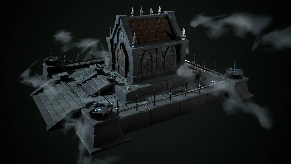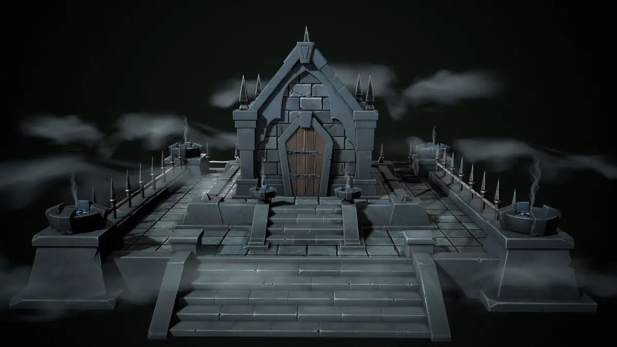 Stylized crypt..Crypt (Two packs textures (base_color...metallic..ao..normal..roughness..height..Emissive(4096 jpeg)..Smoke one texture (alpha) 2048(tga) render to marmoset 4.. 3ds max 2023..fbx..obj.. polygons - 10866..vertices - 12921.. PBR..