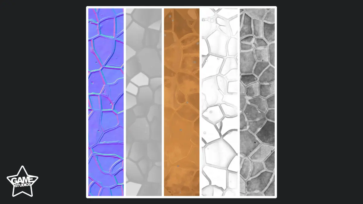 - Five textures included: BaseColor, Height, Normal Map, Ambient Occlusion, and Roughness 2048x2048 pixels in size.