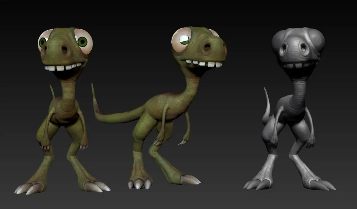 3D stylized dinosaur. Created and texture painted in Zbrush. Posed and un-posed Ztool available in downloads. High Poly mesh. Decemation master used to create lower poly version. Keyshot used to render preview.
