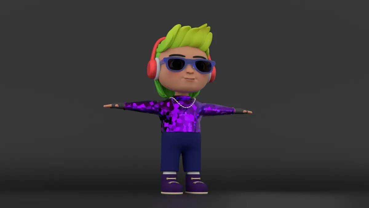Stylized 3D DJ Character Fully Rigged with Facial Shape Key Animation(only works on Blender)