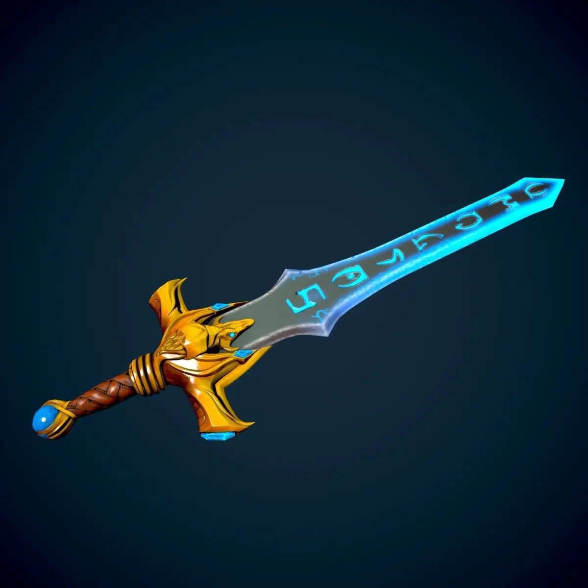 Dragon hilt stylized fantasy sword, has PBR textures ( albedo, normal,metallic, roughness, ambient occlusion, emissive), polycount about 2.8k.