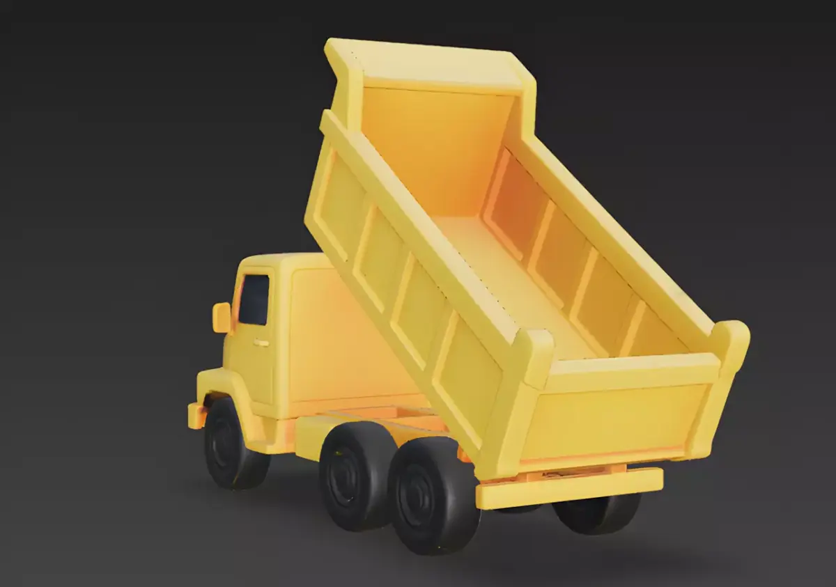 Vibrant High-Visibility Yellow FinishThe main body and haulage bed of the truck are finished in a uniform, high-gloss yellow texture. This high-visibility palette emphasizes the model's thick, reinforced geometric proportions and maintains a professional, cartoonish art style suitable for high-fidelity rendering.