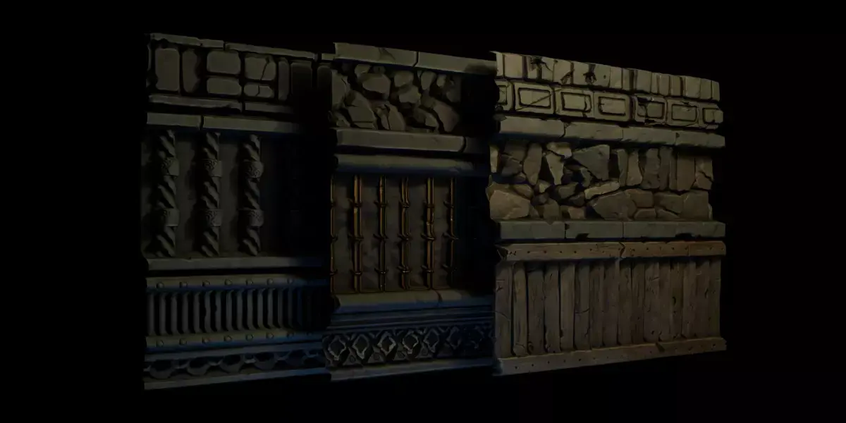 Stylized Dungeon texture pack for all your needs!Building a dungeon? Tired of sourcing textures that go together cohesively? No worries! Here is a complete set of textures to build your dungeon with no hassle. This pack includes variations of Walls, Terrain, Trims and Doors.Contents: