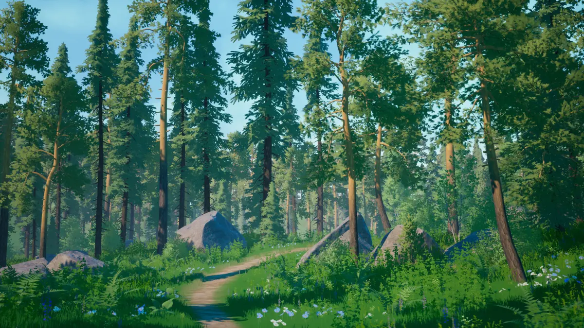 Pines - 8 (534 - 15475 triangles) Spruces - 6 (4150 - 8242 triangles) Birches - 8 (828 - 15962 triangles)Bushes -3 (1206 - 3030 triangles)Stones - 10 (68 - 518 triangles)Plants - 8 (12 - 658 triangles)Grass- - 9 (4 - 6 triangles)