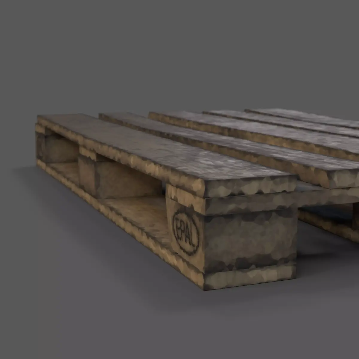 Stylized pallet (EPAL Euro ≈ 1200X800X145) 3D model designed for games. Includes PBR textures, optimized low poly geometry and three LOD levels for better performance. This model has been specifically prepared for Unity (LOD meshes are named for automatic Unity LOD setup, and the MaskMap is configured for Unity), but it can also be used in other game engines and 3D softwares.
