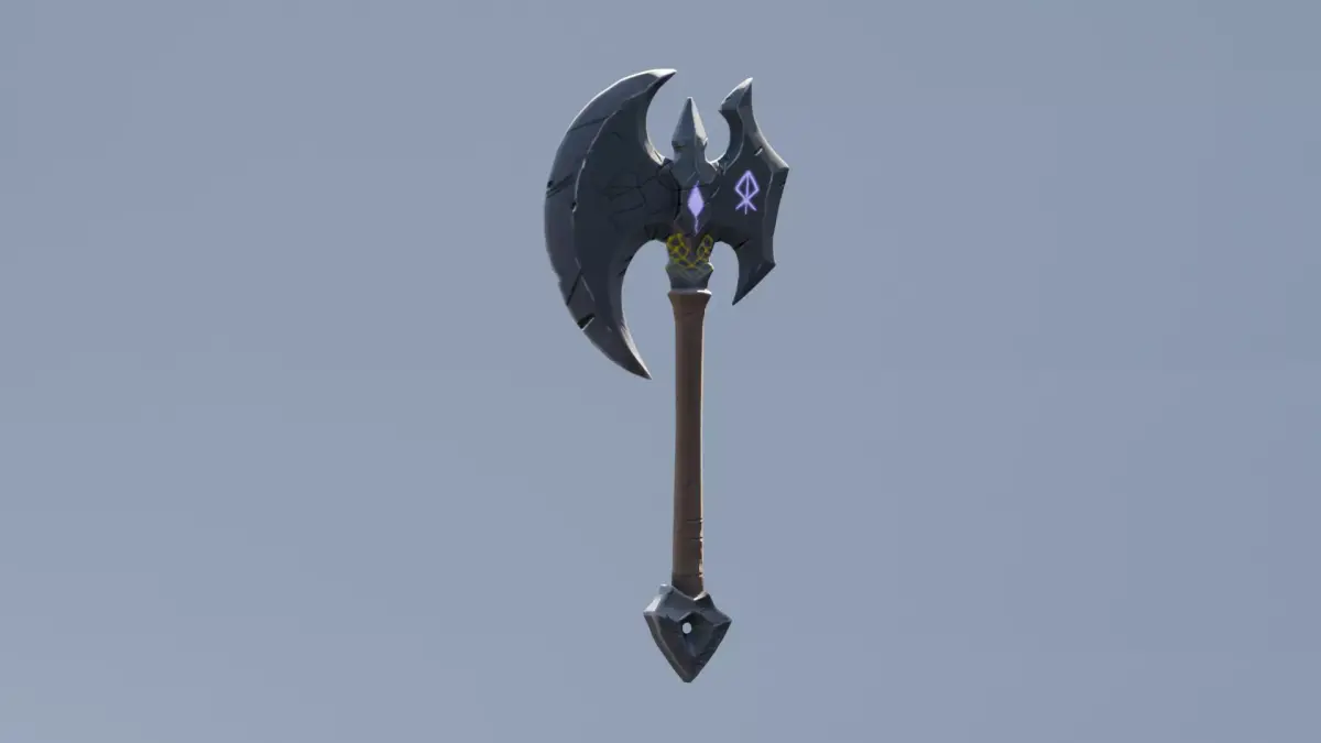 Axe infused with a gem and runes that pulse with dark energy.