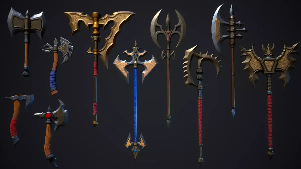 - 10 unique stylized axe meshes