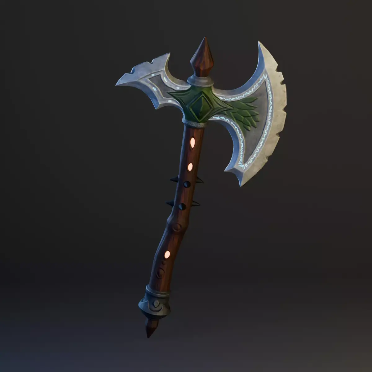 Stylized Fantasy Battle Axe – a high-quality, game-ready weapon asset designed for real-time engines and cinematic renders.