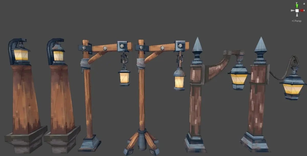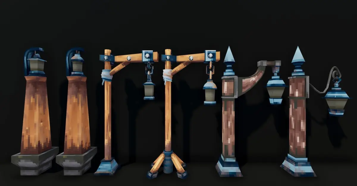 Stylized Fantasy Exterior Lamps Low-poly 3D model