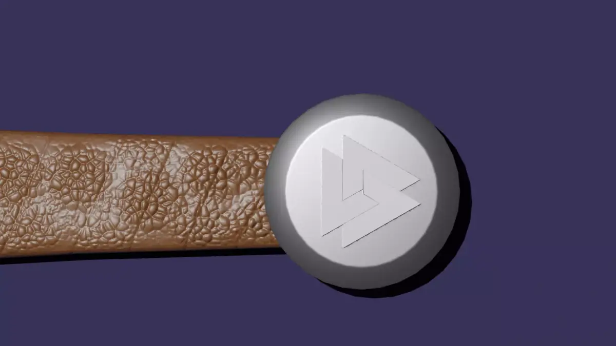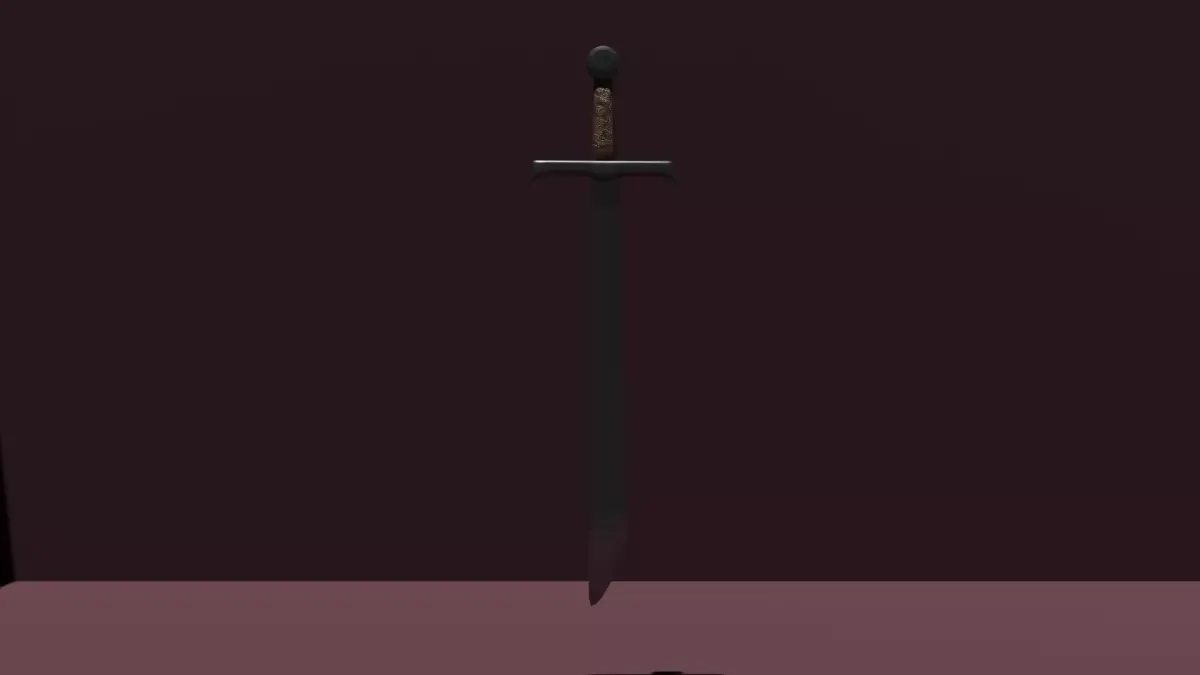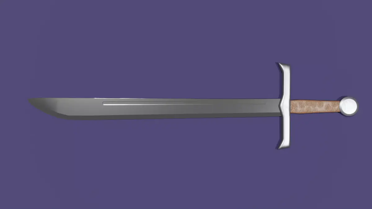 A 3D model of a medieval-style falchion. The weapon features a wide, single-edged blade, a protective guard, and a textured leather-wrapped handle for a comfortable grip.The pommel features a valknut engraving. The model was baked for better optimization (reduced polygon count).