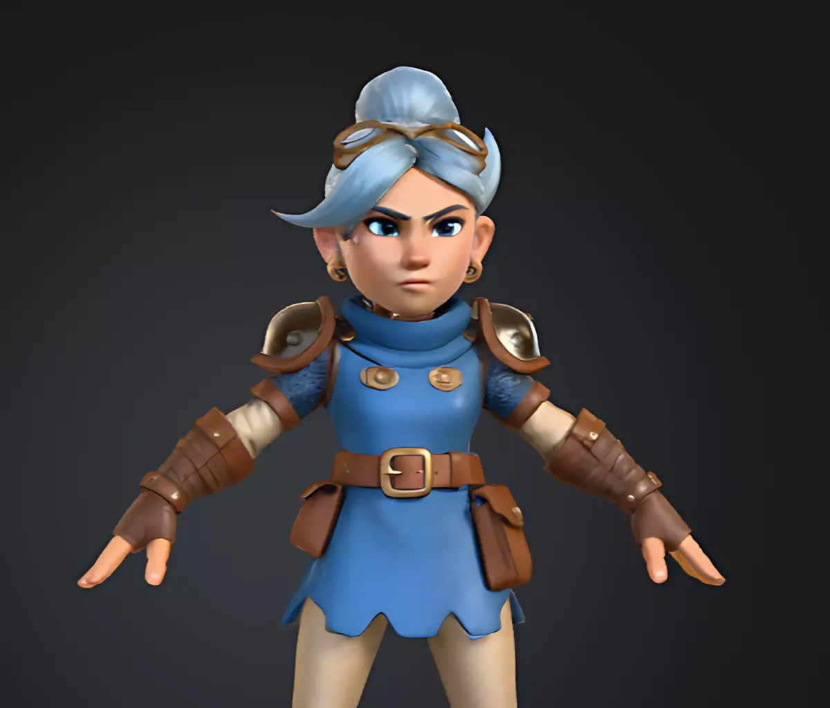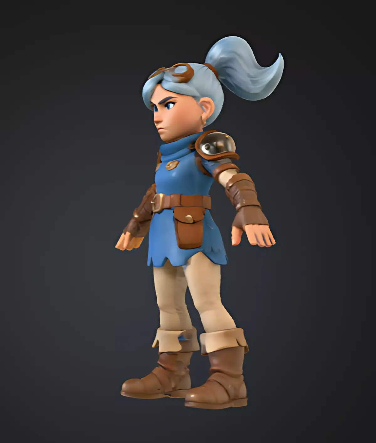 This is a stylized fantasy female adventurer character with a heroic, cartoon-inspired design.Perfect for games, animations, cinematic renders, mobile games, VR/AR, and fantasy projects.