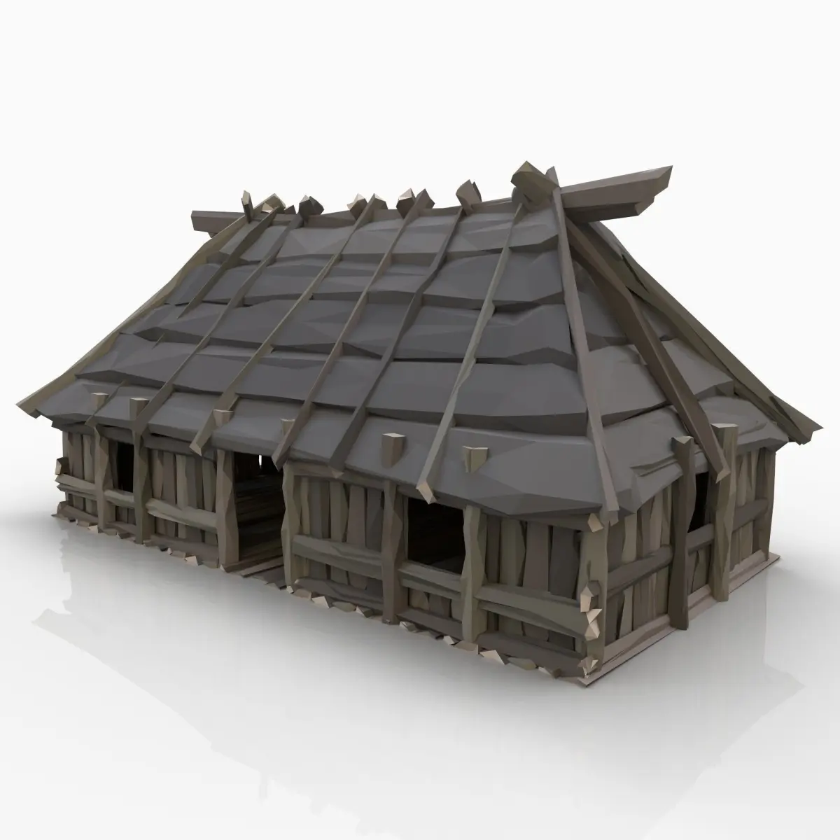 - Next gen, AAA quality, game-ready STYLIZED model of medieval viking wooden cottage house.
