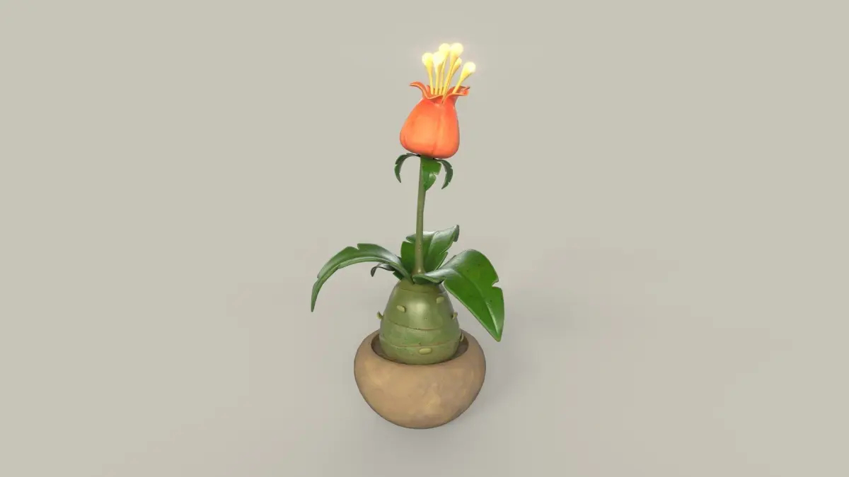 - Model is split into separate elements (leafs, flower, glowing stalks, pot and main stalk are separate objects)