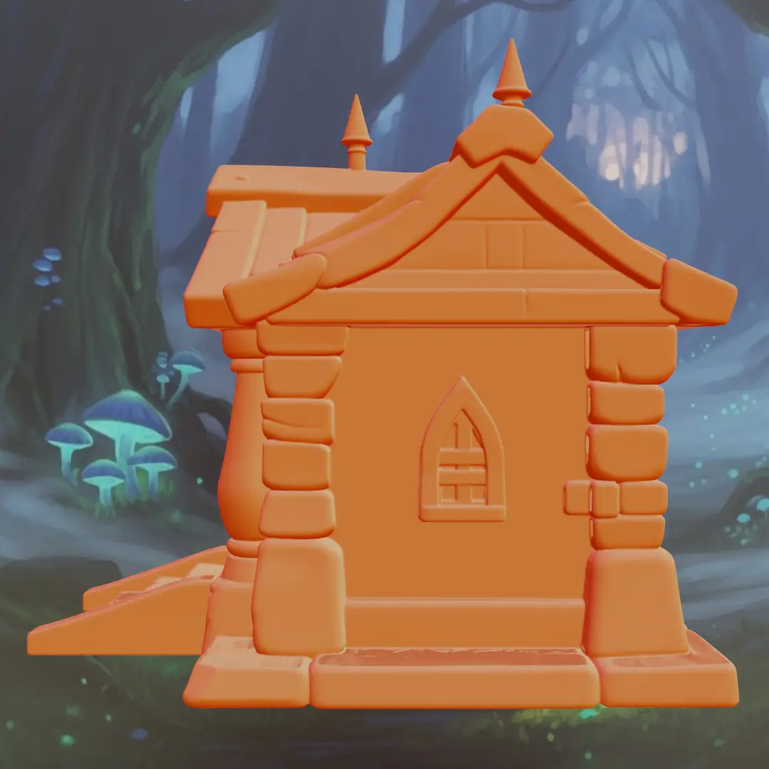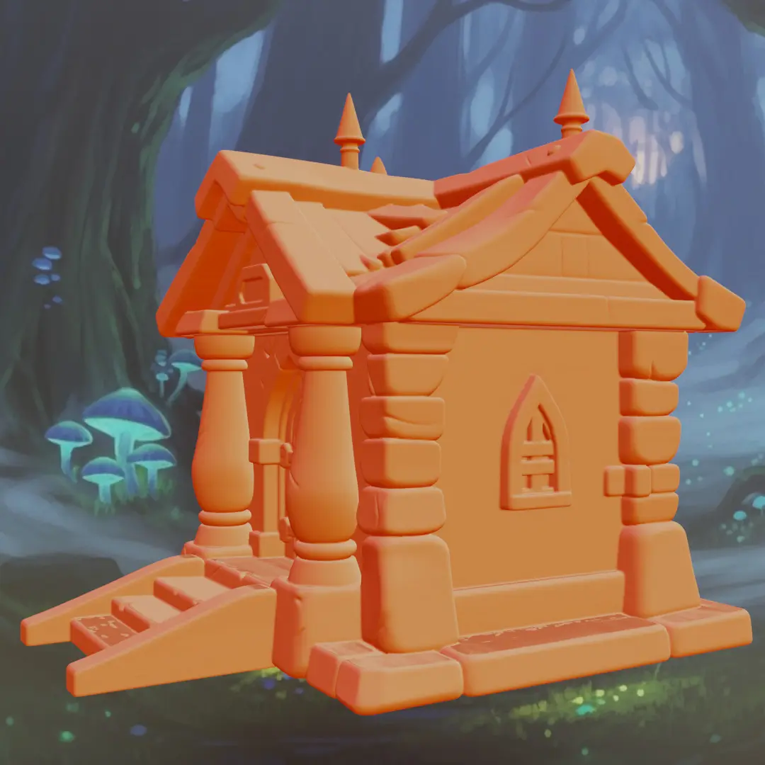 Please note: This download includes the Stylized Fantasy Woodland Cottage model ONLY.