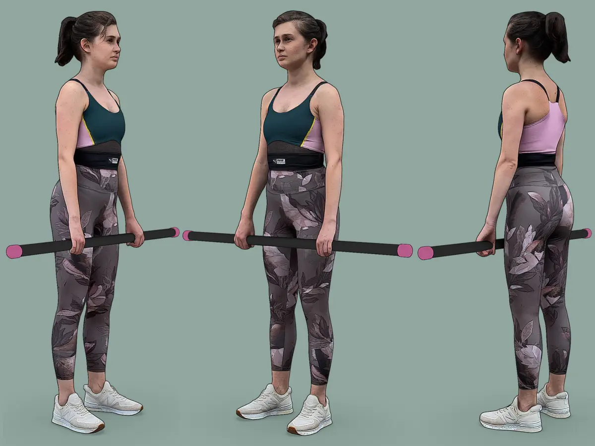 Young woman, girl in the gym, fitness, group lesson, cross fit, getting ready for exercise, warm-up, during Romanian deadlift.
