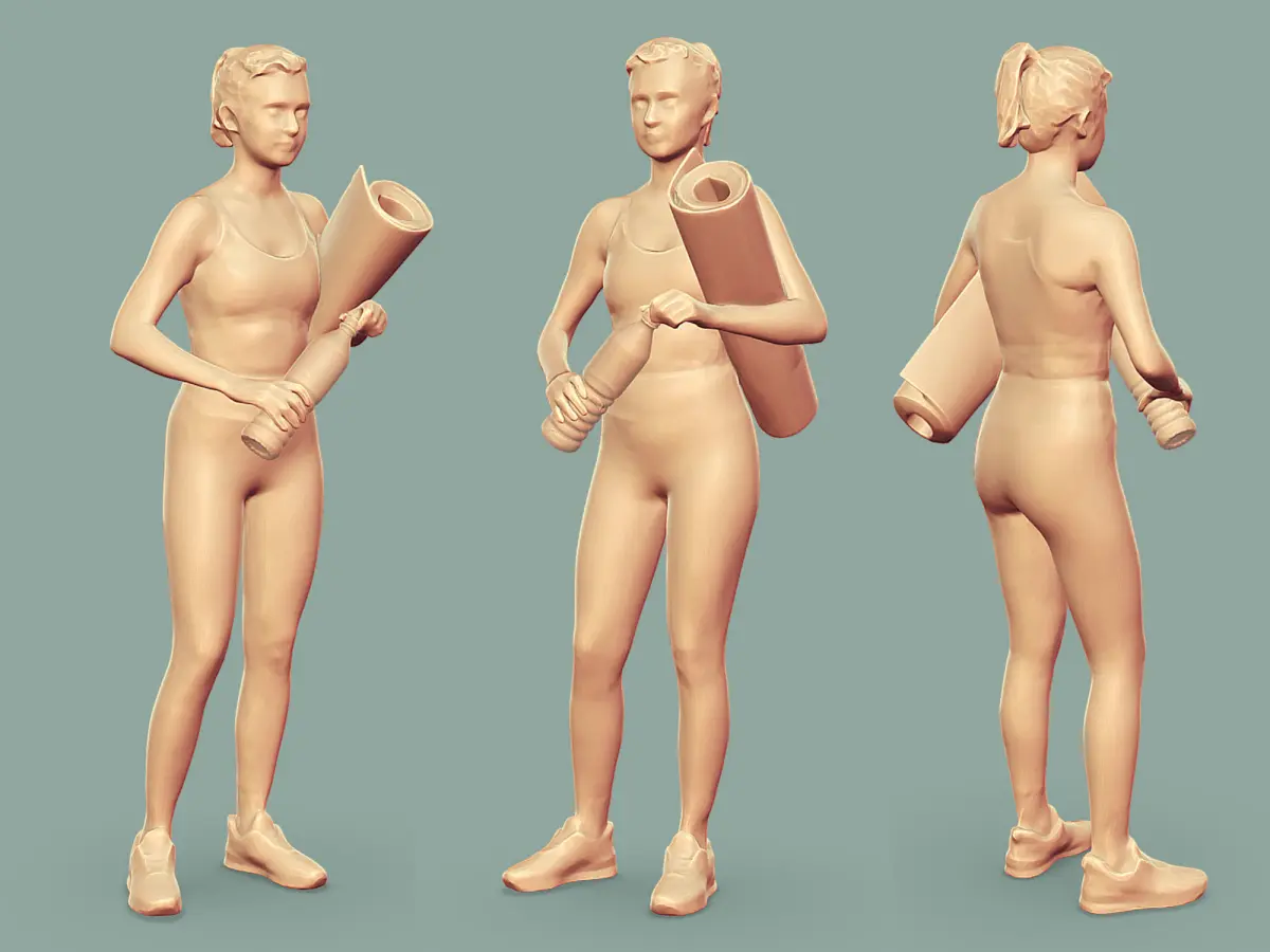 Stylized Fitness Character 3d model ready for Virtual Reality (VR), Augmented Reality (AR), games and other real-time apps. 50 000 polygons per model (if you use the border otline the polycount is doubled). Suitable for the architectural visualization and another graphical projects.