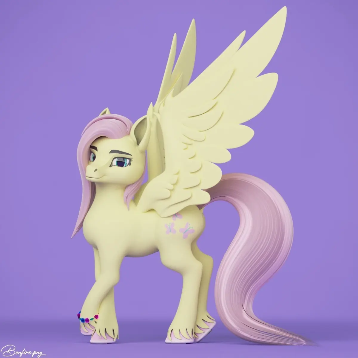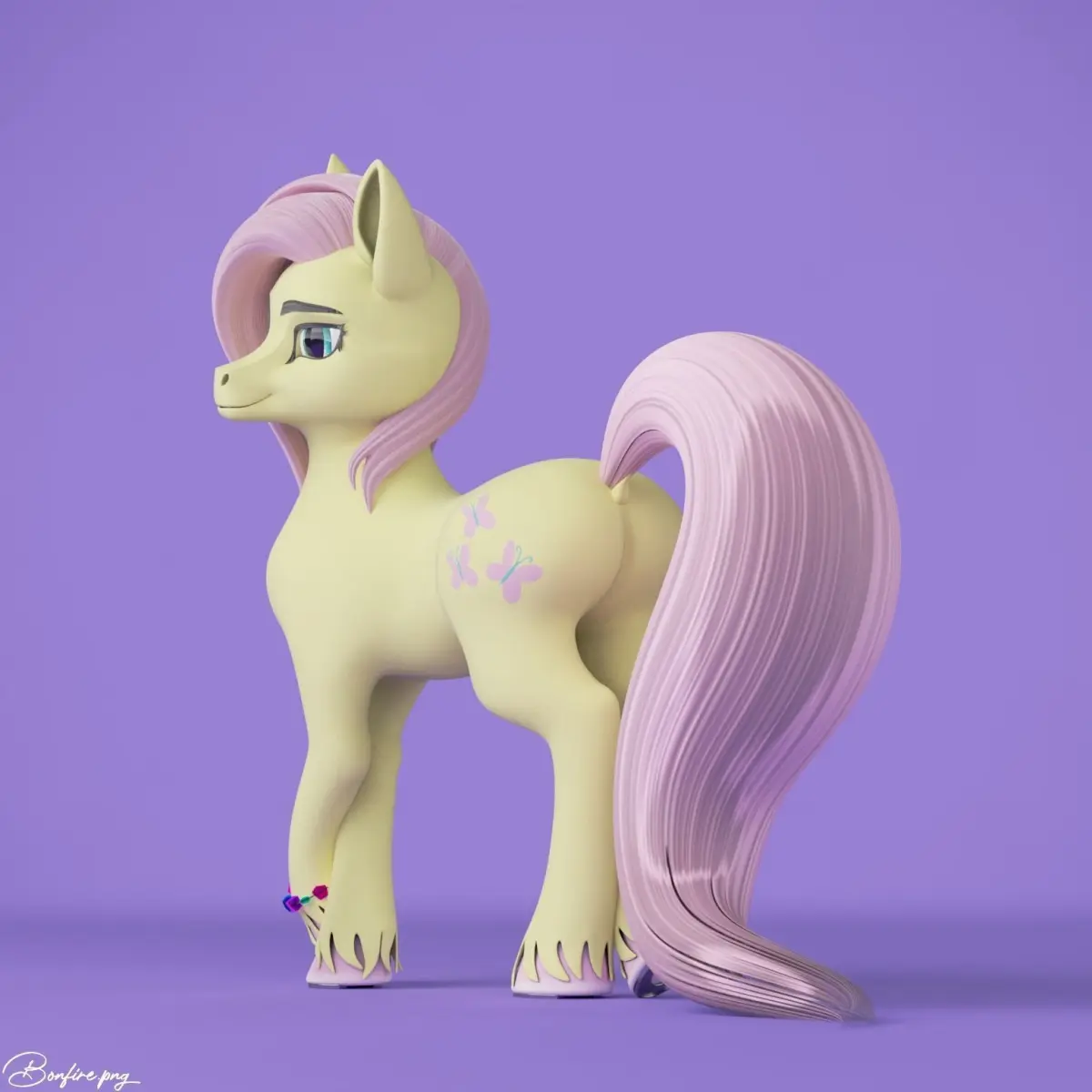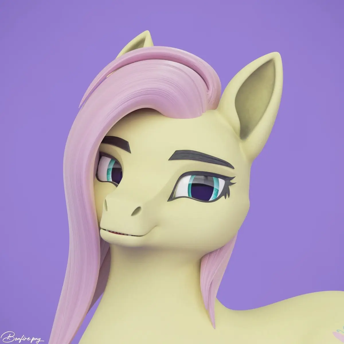 Stylized 3D model of Fluttershy from My Little Pony cartoon by Hasbro. Model made with blender 2.93 and updated to 3.0 - 3.3.This stylized Fluttershy was inspired from many art that based on horse OC or Fursona.