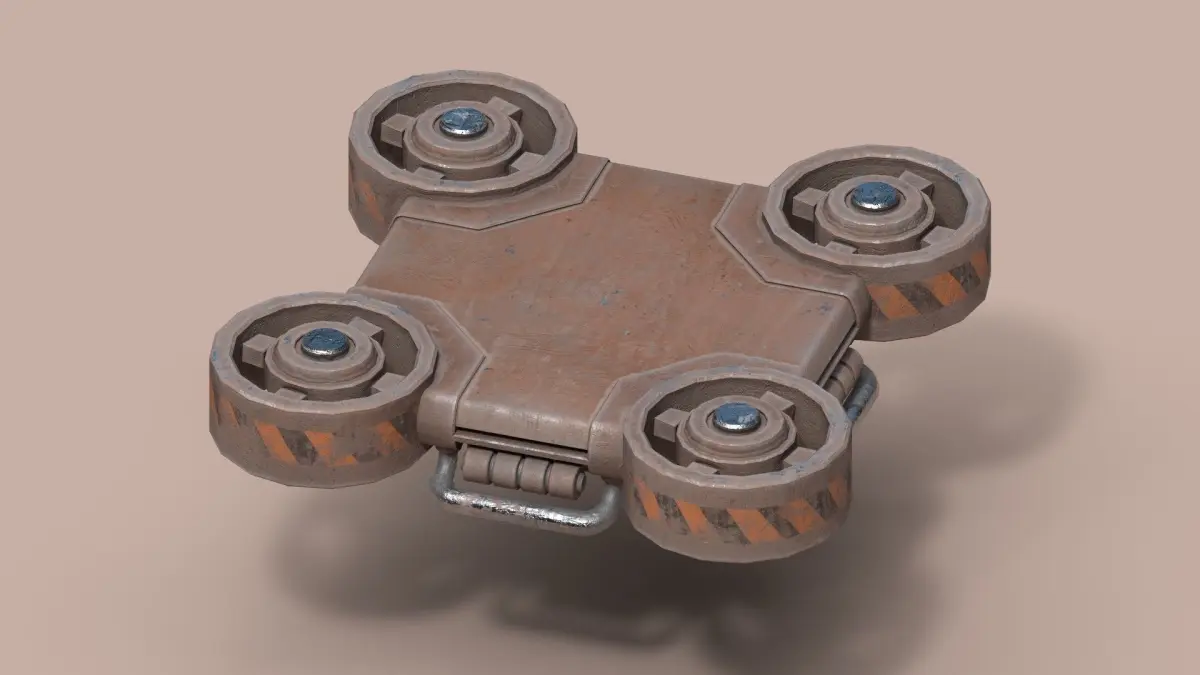Stylized rusty Flying Jump Pad/drone platform game-ready model made in 3ds Max 2023 and textured in Substance Painter