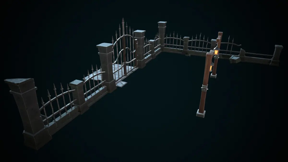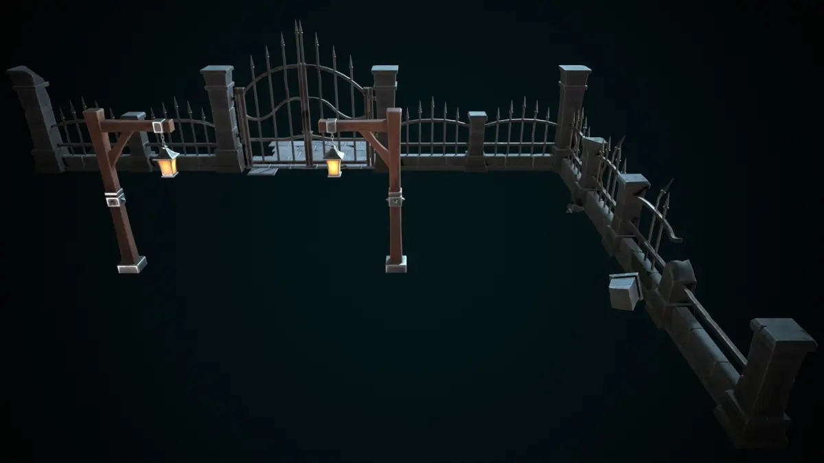 Stylized gate.. base_color...metallic..ao..normal..roughness..height..Emissive(4096 jpeg).. render to marmoset 4.. 3ds max 2023..fbx..obj..polygons - 17599..vertices - 19539.. PBR