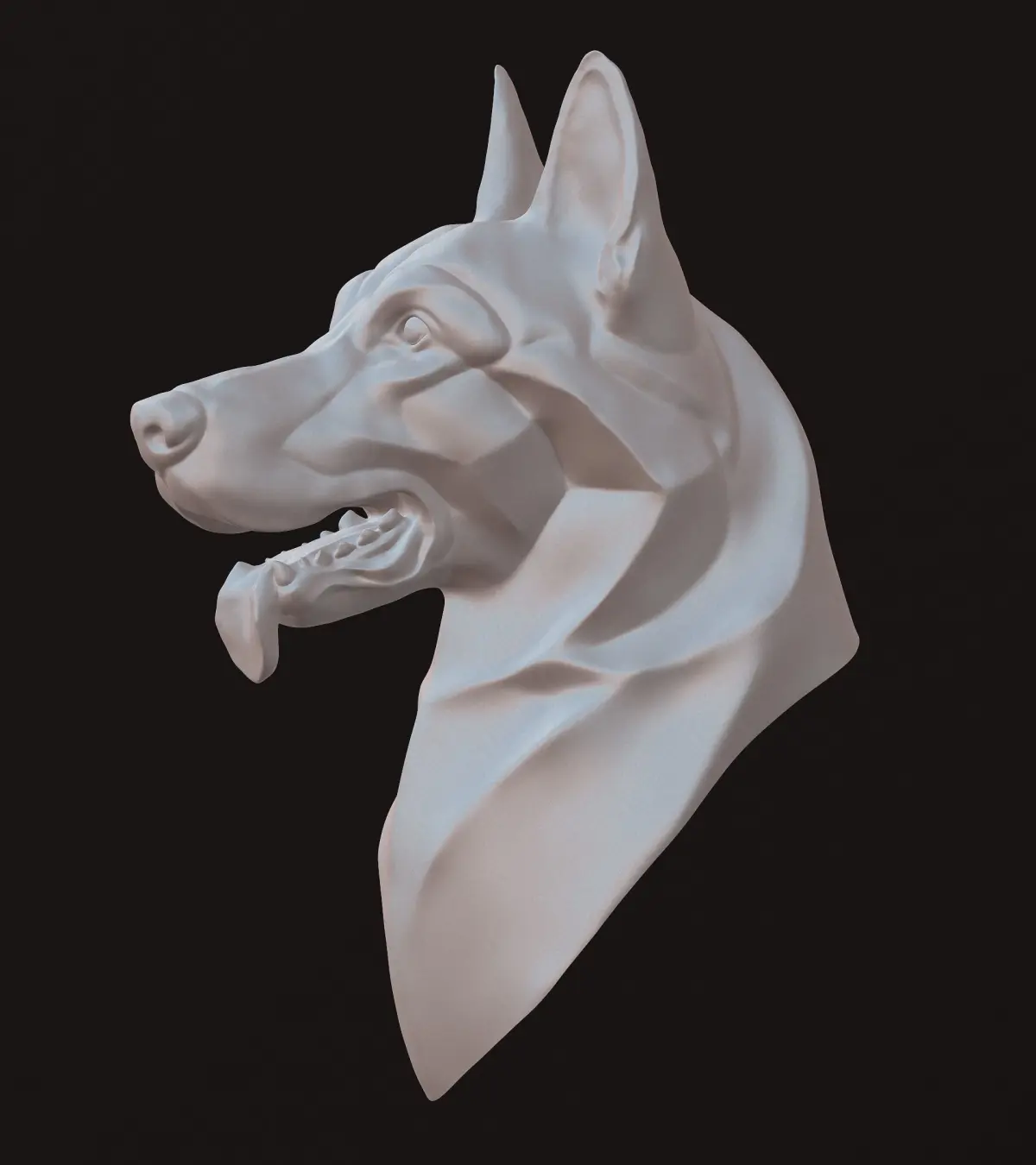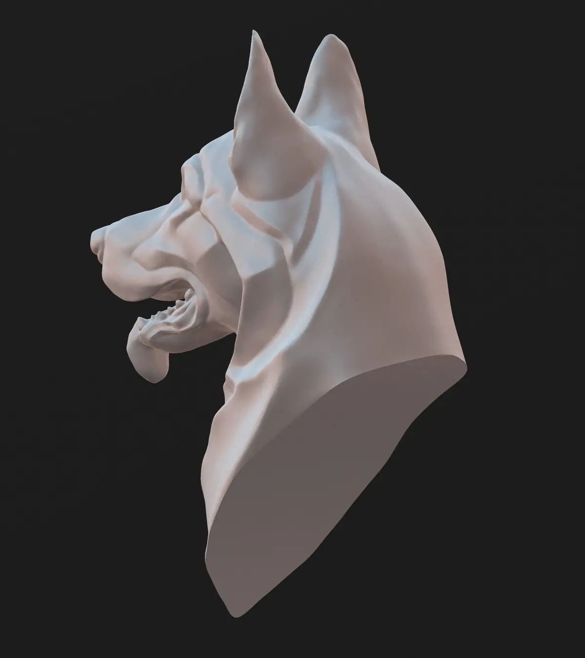 Manually sculpted high poly German shepherd dog's head in ZBrush. Render performed in Marmoset Toolback 3.