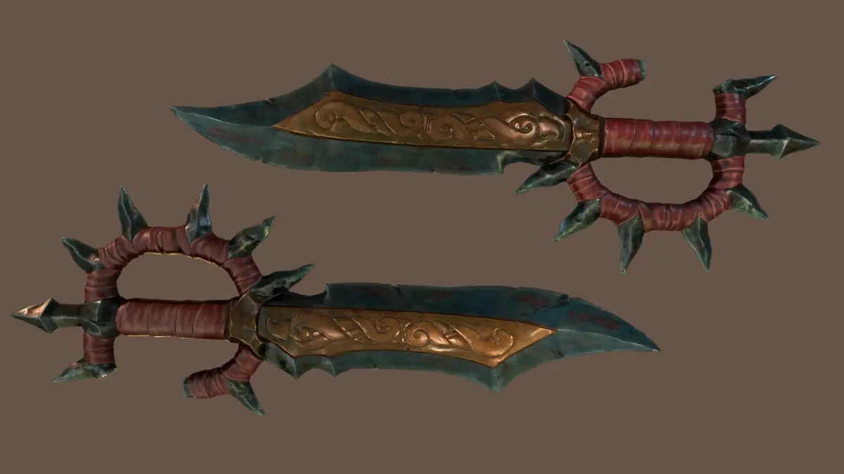 Fantasy warcraft-like dagger, or sword if you like. Textured in hand-paint style. The design is a combination of different publicly available references. I see it as a goblin assassin sword or dagger, or some barbarian, or an ork -like creature knife.