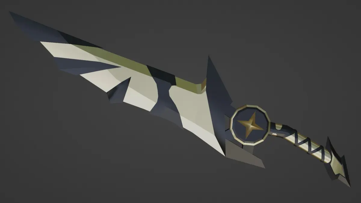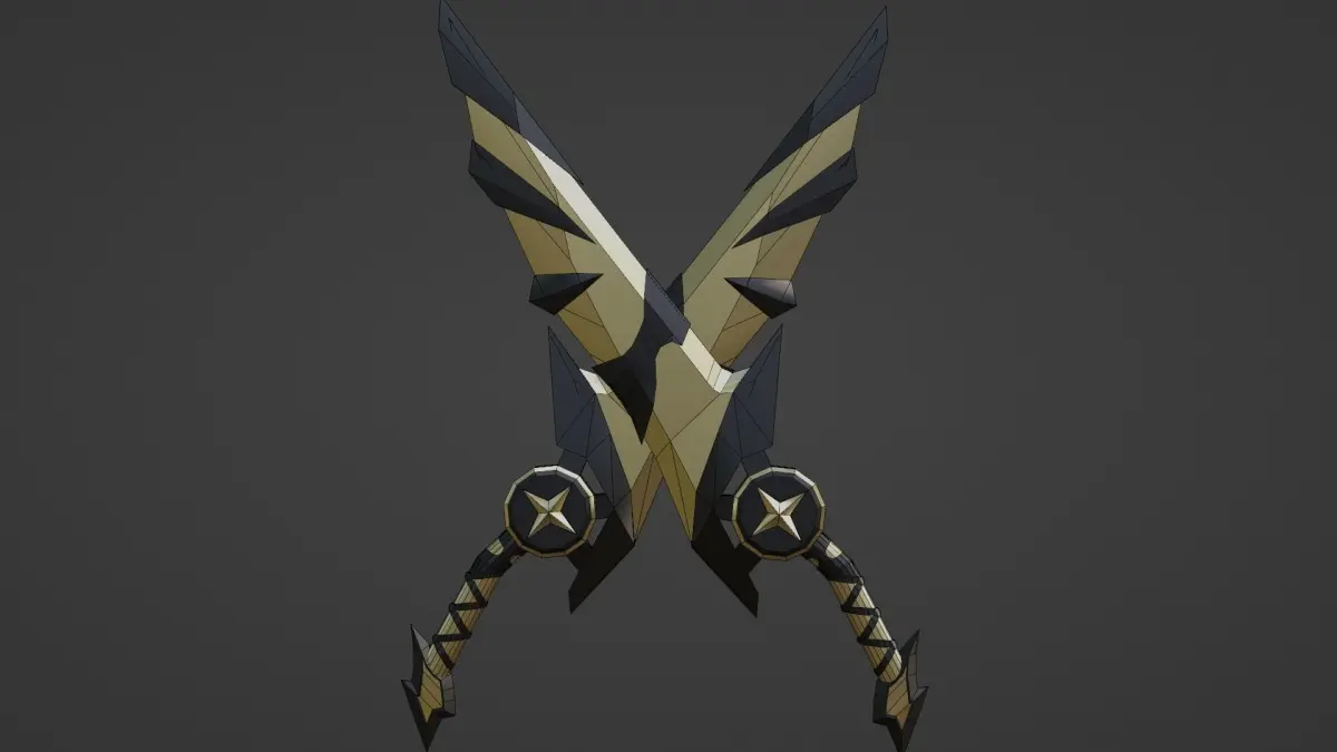 stylized golden double daggers encrusted with black crystals