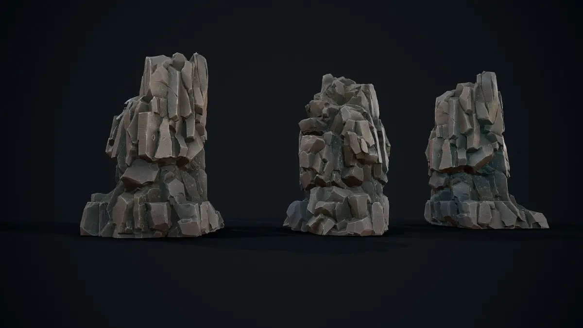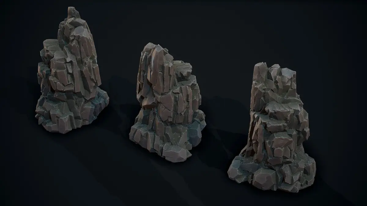Stylized Gray Stone mossy8 low poly model for PBR shader. texture 4k Albedo, Metallic, Roughness,AO, Normal map include: 3ds max file obj Fbx
