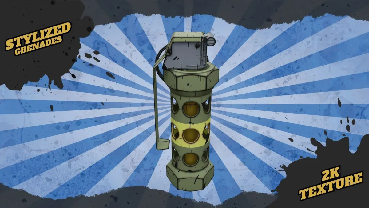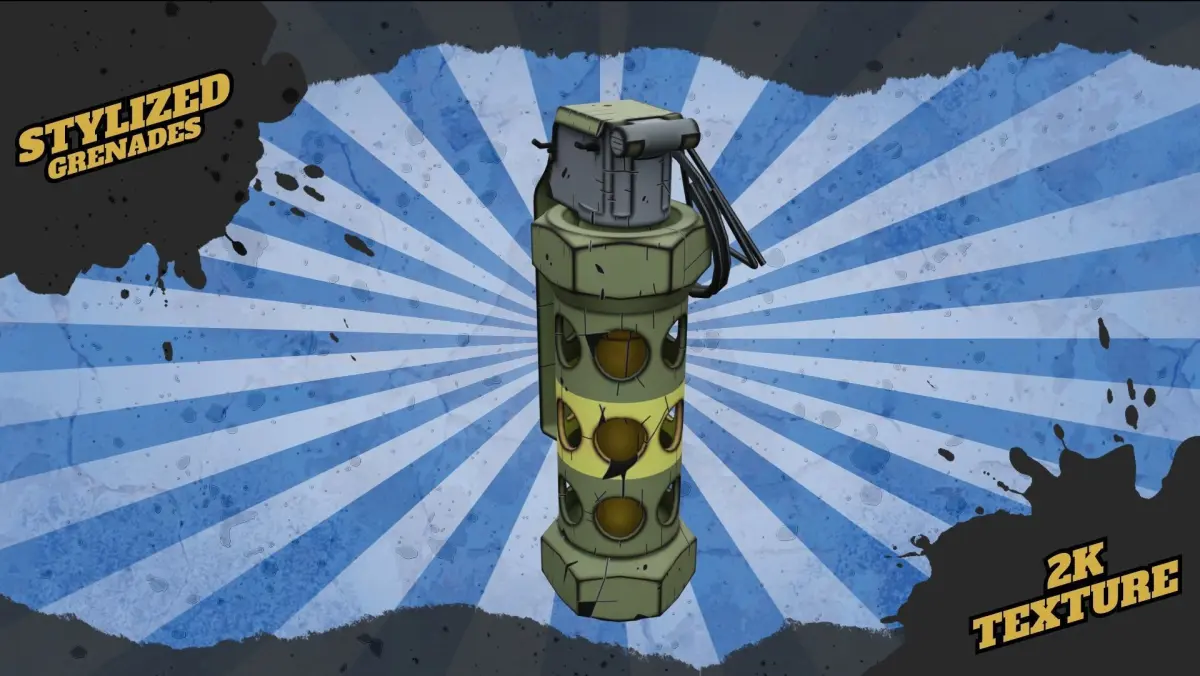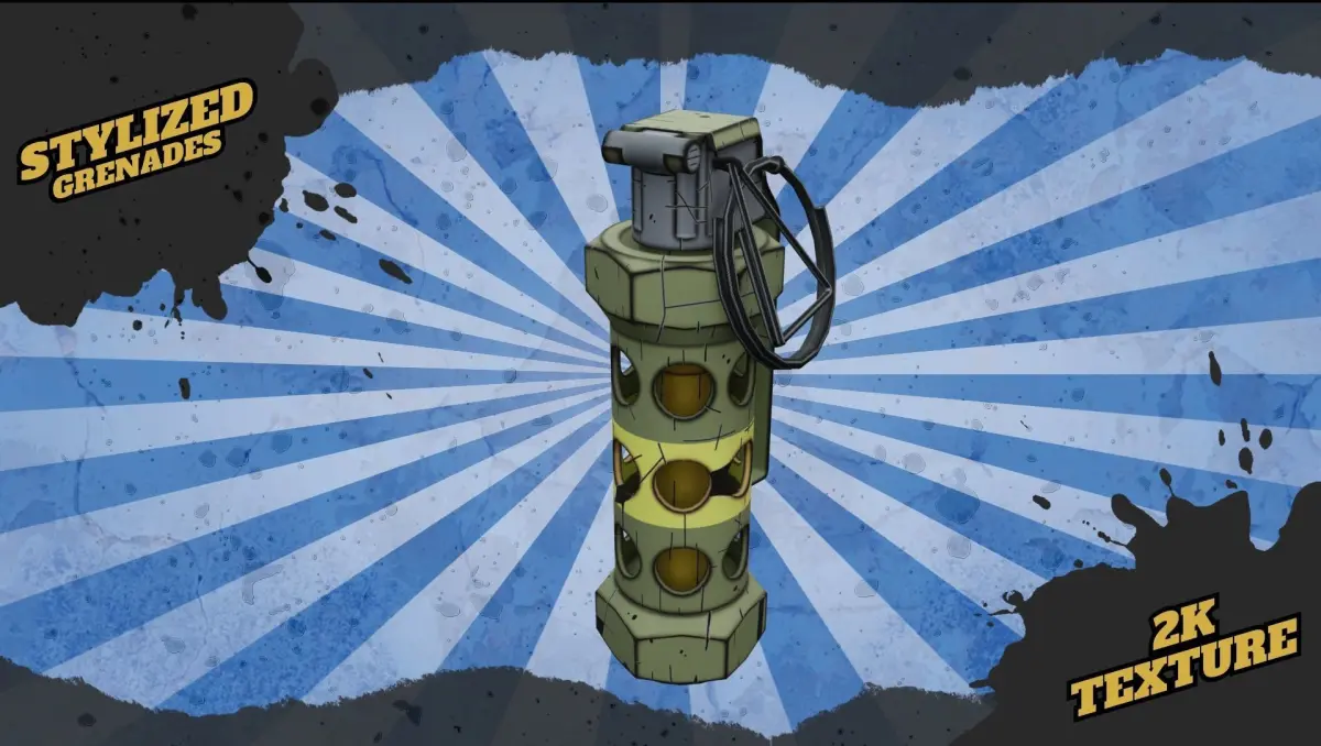 - Stylized Grenade, 2k textures, 3 LOD's, Textures format in PNG, TGA (.tag) for Unreal and Unity;