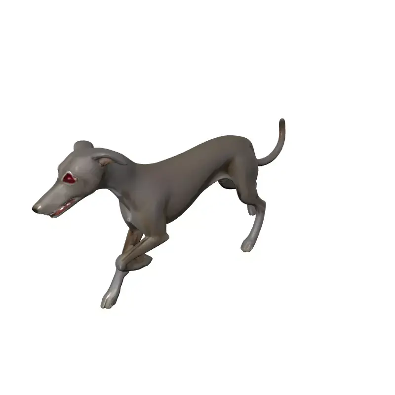 Presenting a meticulously crafted 3D model of a stylized Greyhound or Whippet, embodying grace and elegance in a dynamic pose. This striking digital sculpture features a sleek, almost metallic finish, highlighted by strong contours and a refined aesthetic. Ideal for a wide range of creative projects, it can seamlessly integrate into game environments as a unique animal companion or decorative asset, enhance architectural visualization scenes with a touch of modern art, or serve as a compelling focal point in AR/VR applications. Digital artists will find it an excellent base for high-quality renderings and conceptual art. Furthermore, with its clean geometry and solid form, it is perfectly suited for 3D printing, allowing for the creation of stunning physical figurines or decorative sculptures. The model boasts clean topology, making it easy to manipulate and ready for subdivision if higher detail is required for close-up shots. It is UV unwrapped for efficient texturing and designed with PBR workflows in mind, ensuring realistic material interactions under various lighting conditions. Supported file formats include GLB, OBJ, STL, ABC, DAE, FBX, USD, and PLY, providing maximum compatibility across different 3D software and platforms. Whether for real-time applications or high-fidelity static renders, this Greyhound model offers exceptional versatility and visual appeal.