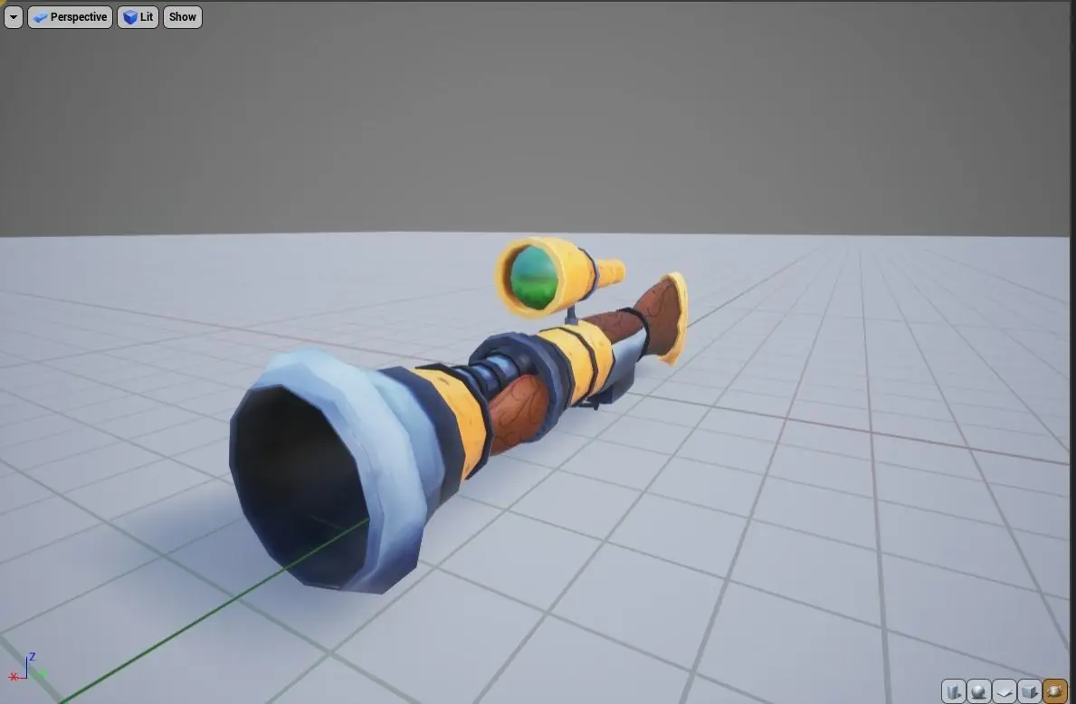 Has been tested in unreal, appropriate to scale, approx 1 meter long. Heavily based off of the color work in games made by toys for bob.