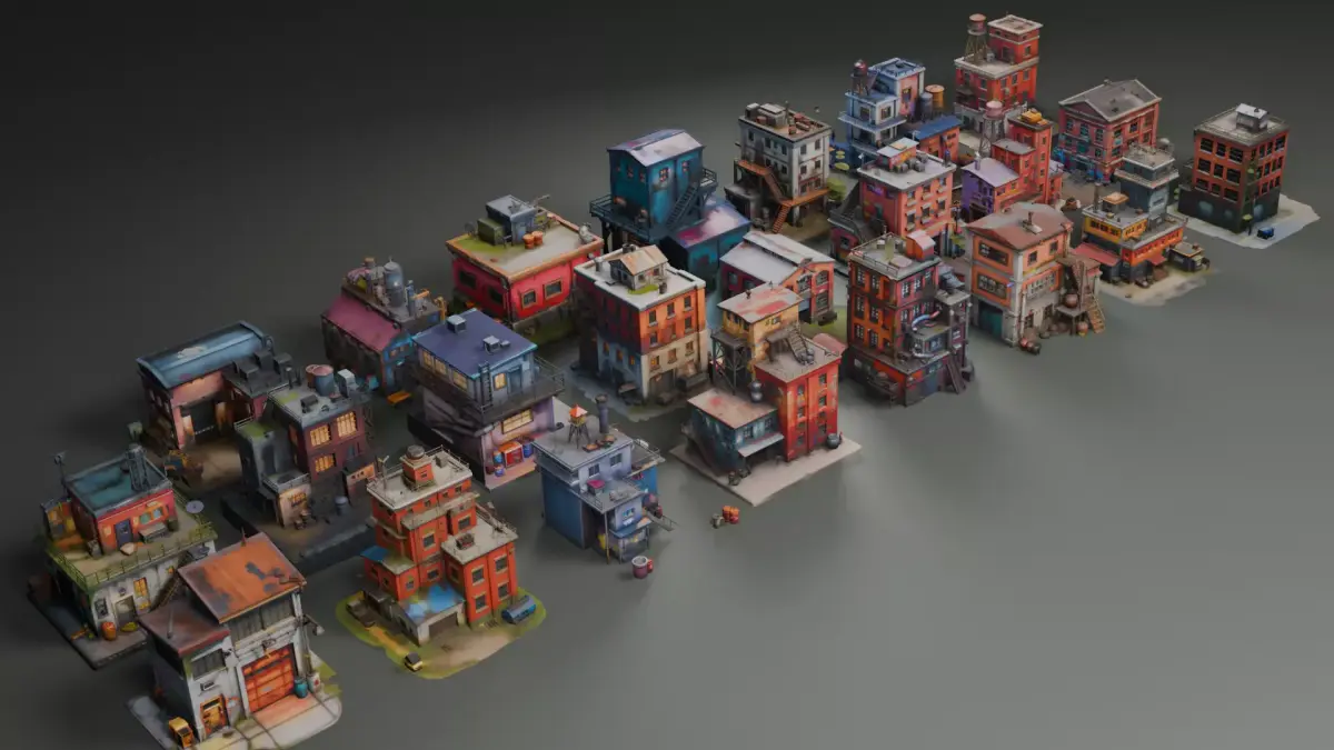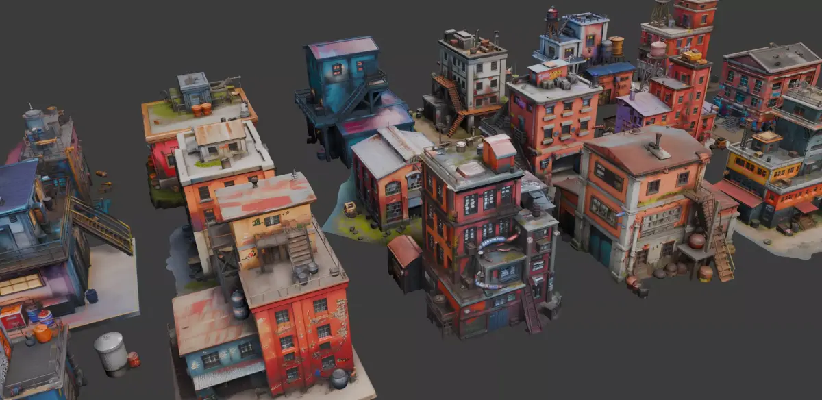 Large set of unique stylized industrial buildingsModular-friendly designsDetailed rooftops, mechanical parts & propsHigh-quality PBR texturesLowpoly & optimized meshesPerfect for city building, platformers, shooters, survival gamesIncludes GLB modelsReady for real-time engines