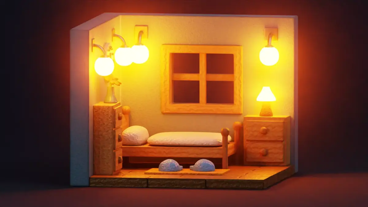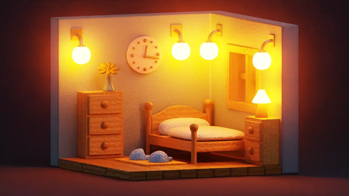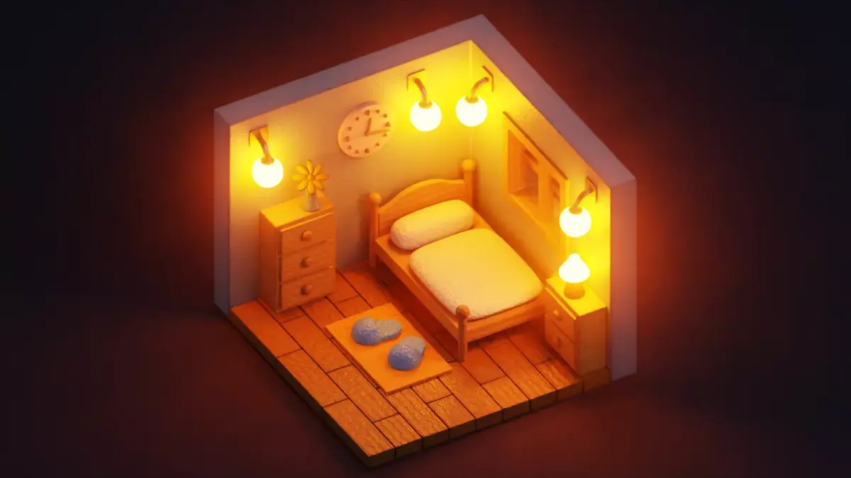 - Fully furnished stylized isometric bedroom