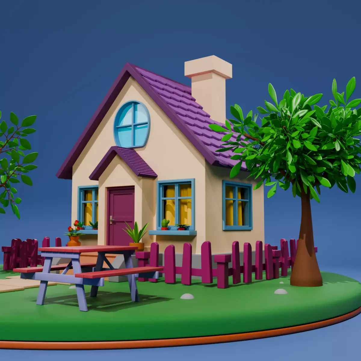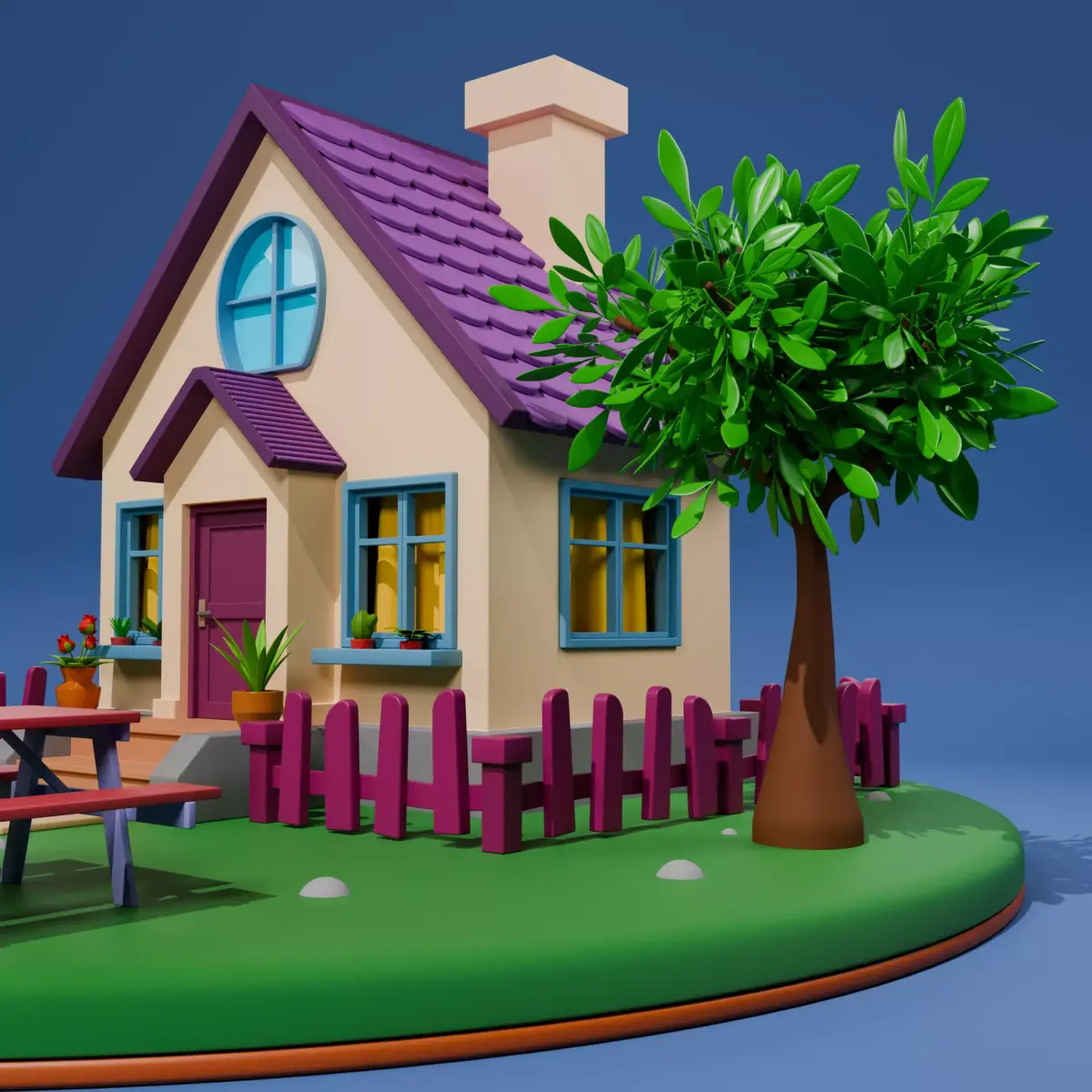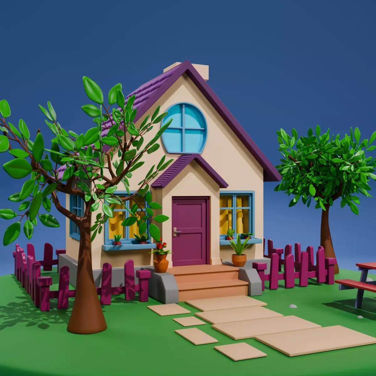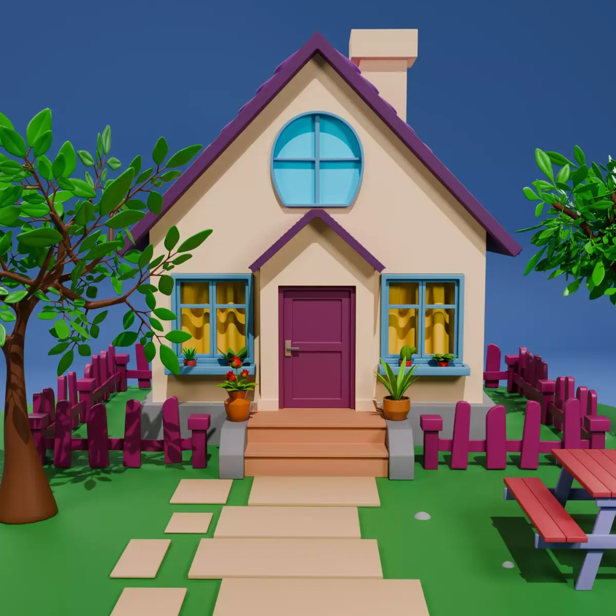 A stylized isometric house with a garden, perfect for games, isometric scenes, animations, or illustrations.The model includes: