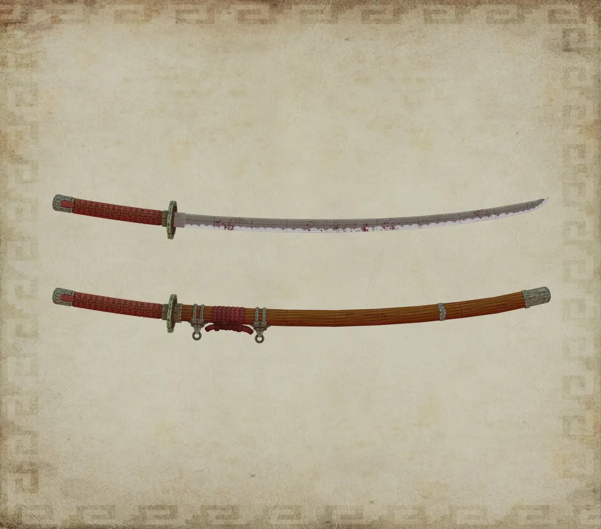 Game sword katana samurai weapon model deployed with two easy-to-use textures in total, the file consists of two models, one is a katana without a scabbard and the second model is the same katana only without a scabbard, the number of polygons is indicated, there is also a separate render on which you can see the topology, the model is optimized and the textures have a high resolution, the result can be viewed in previews if there are any questions, you can contact me via mail antonio.romanenko@gmail.com or through Artstation, you can visit my page on Artstation, the link will be indicated below, I will be glad to hear your wishes https://www .artstation.com/caprisono to see more models of this type thanks!