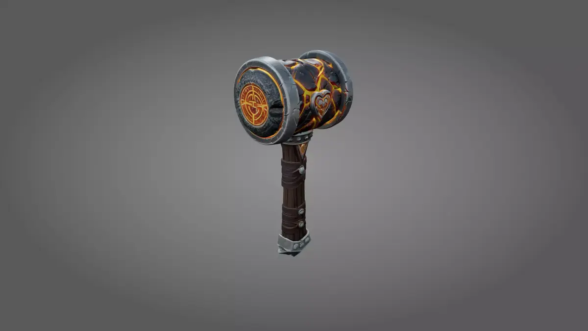 High-quality stylized Warhammer featuring a molten lava core and a glowing heart emblem. This 3D model is meticulously crafted for game engines, fantasy RPGs, and high-end visual projects. Created and optimized in Blender 5.1, it combines volcanic stone textures with glowing magma effects.