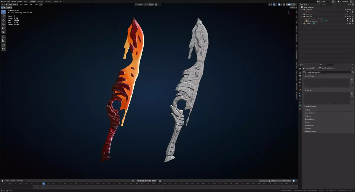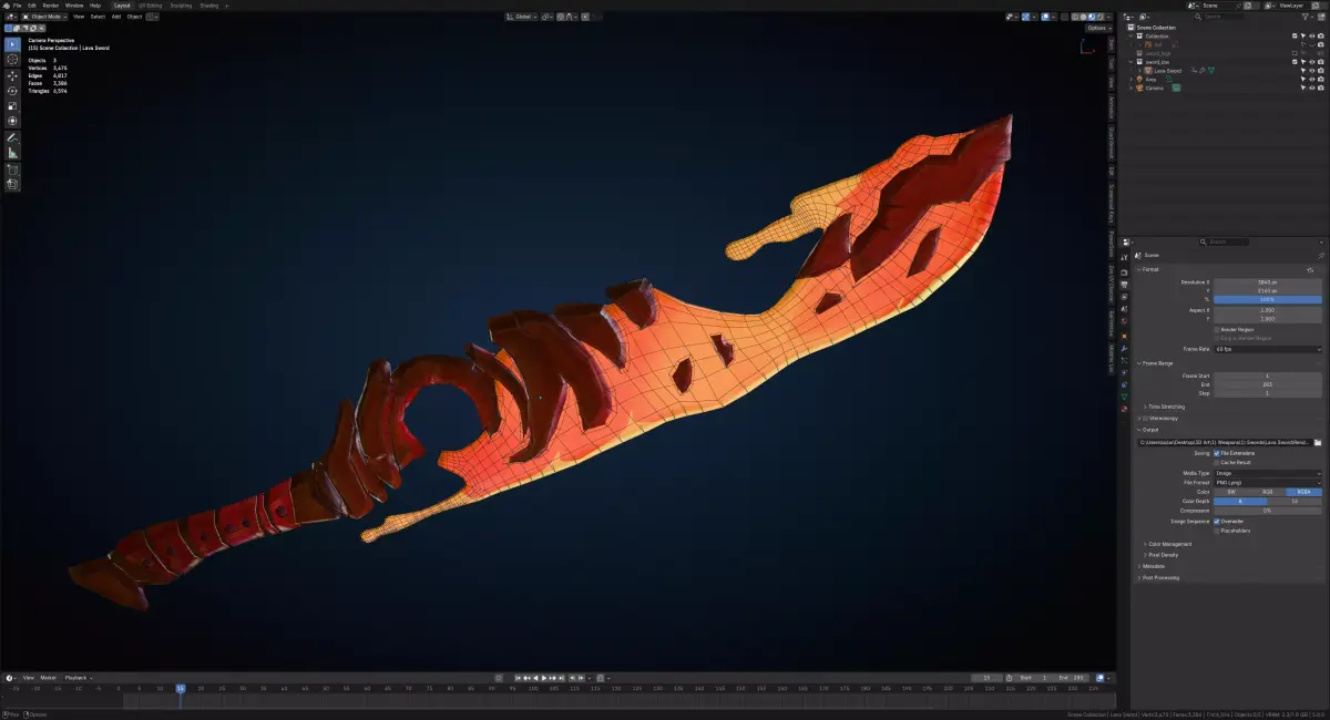 A handpainted Stylized Lava Sword optimized topology for realtime rendering.
