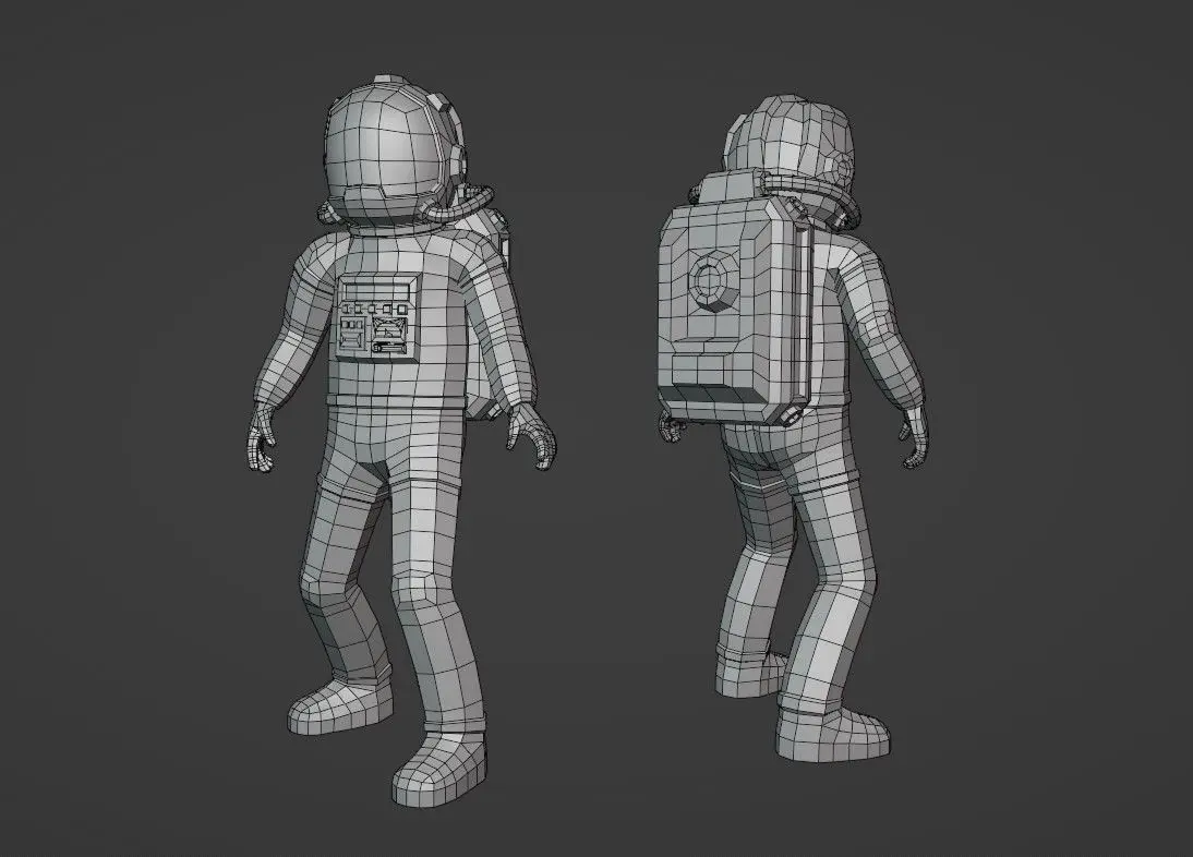 This astronaut in a spacesuit uses a standard set of textures including base color, normal map, roughness map, metallic map, emissive map, and transparency map. This means you can import this model into different 3D applications, such as Unity and others.