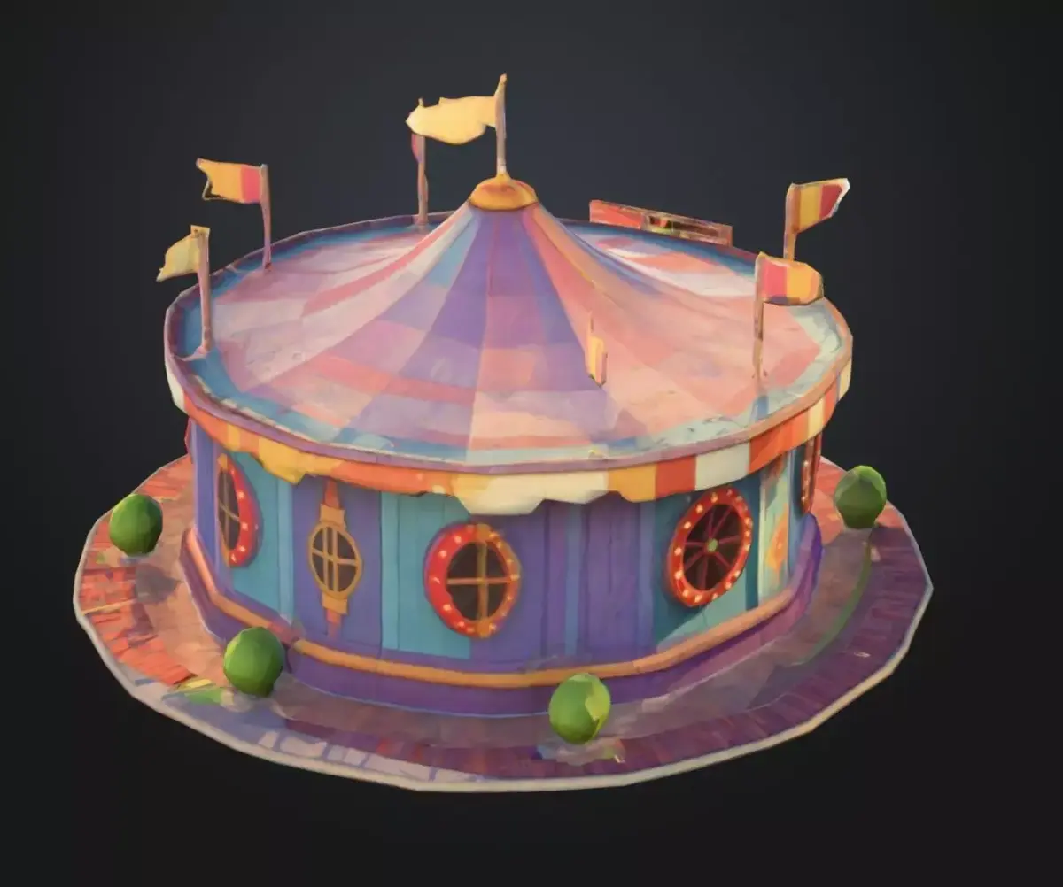 Stylized Low Poly Carousel Tent Cartoon Circus Game Asset Low-poly 3D model