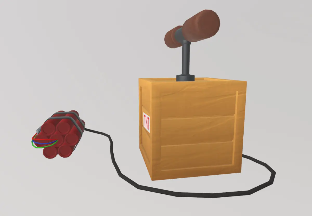 - Includes 2 props: digital dynamite and TNT-style detonator