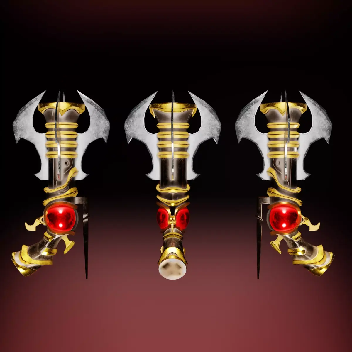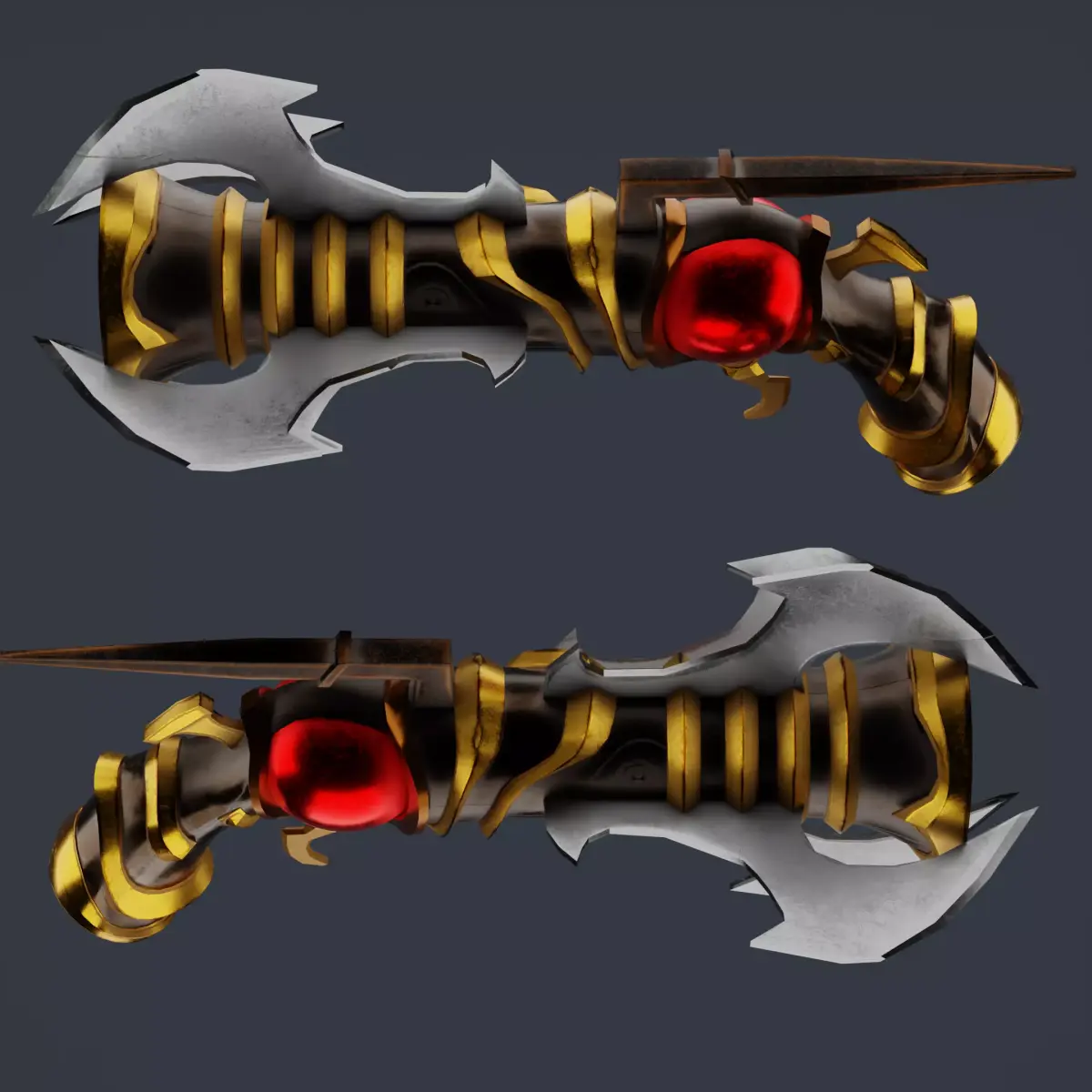 Crimson Catalyst is a stylized fantasy hand cannon axe designed for use in games, animations, and cinematic scenes.This model blends steampunk and fantasy aesthetics, featuring detailed gold metalwork, a glowing red gem core, and hand-painted PBR textures.Perfect for RPGs, adventure games, and stylized worlds, this weapon brings a heroic and magical vibe to any project.