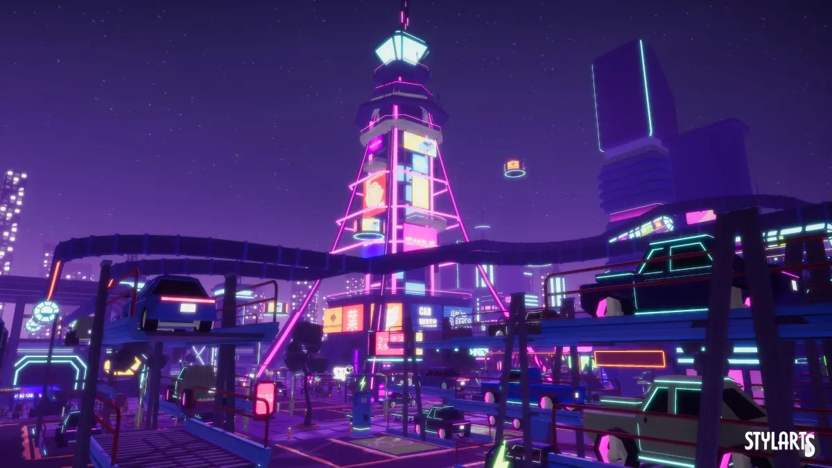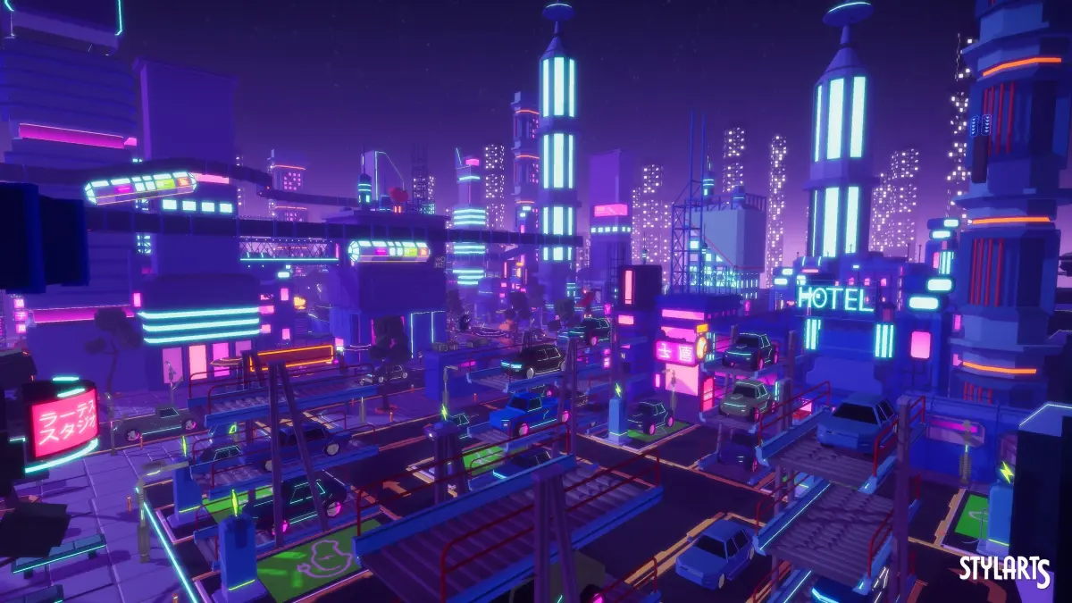 Stylized Lowpoly Cyberpunk City is a low poly environment of props, vehicles, characters and buildings. Including all showcased assets, high-quality assets. With a good level of detail and optimization for Game Ready Projects.