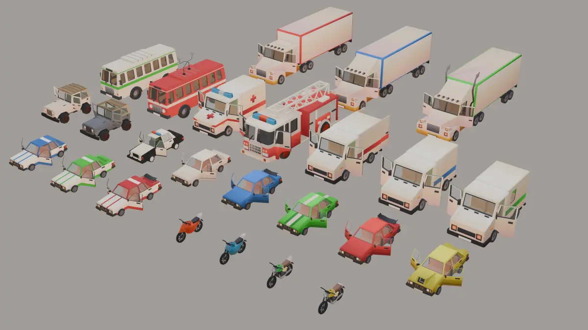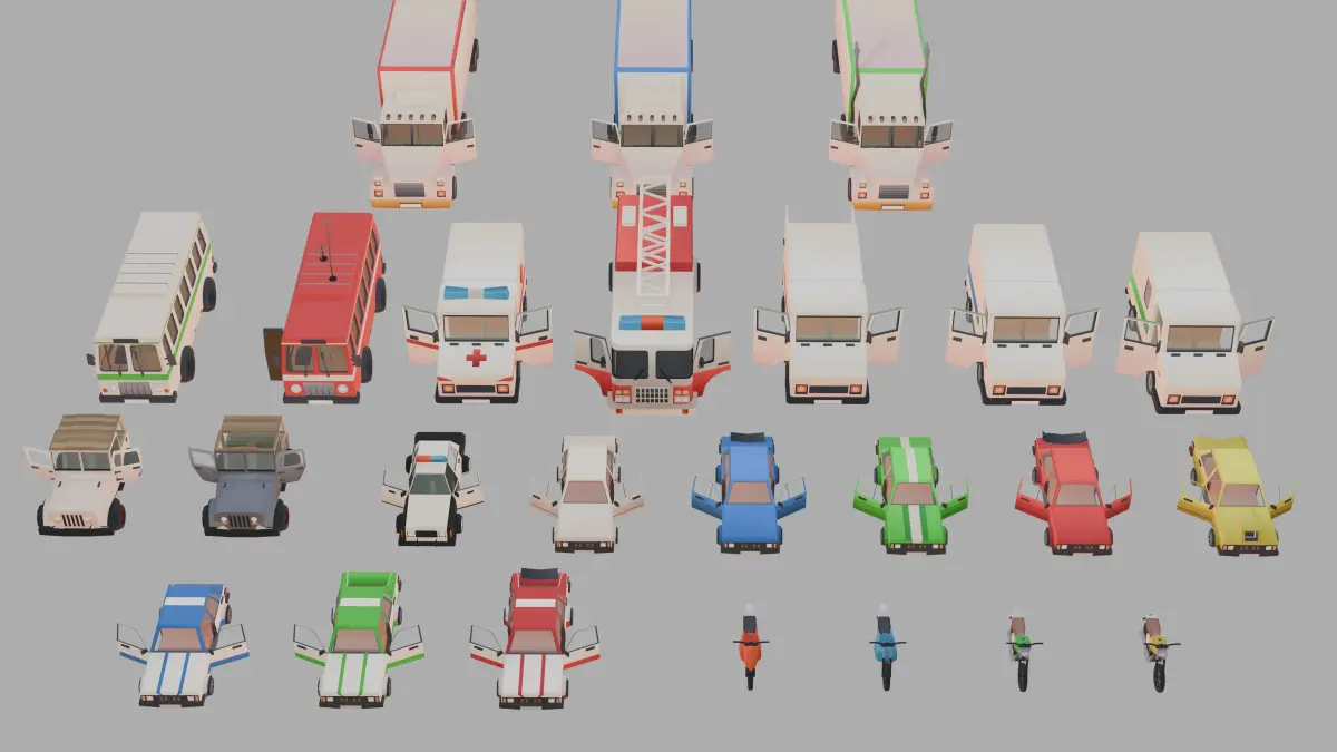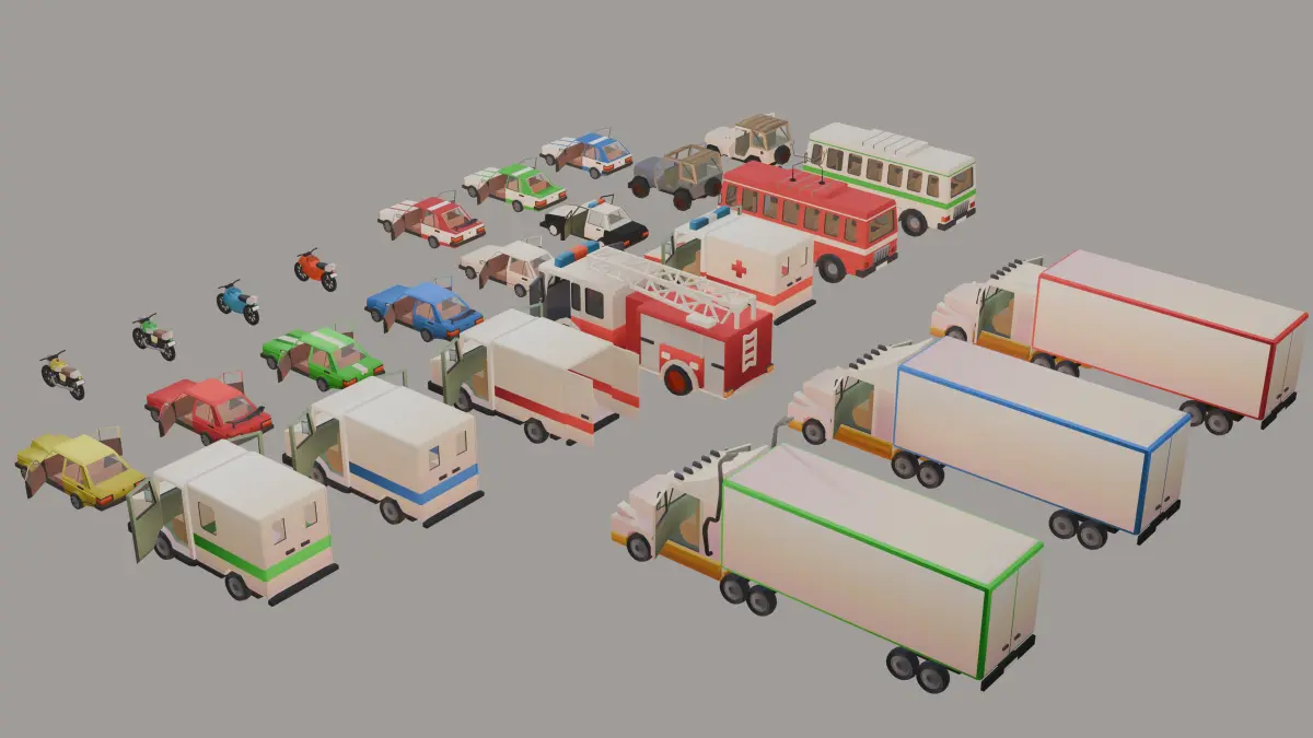 This pack contains 25 different cars and 100+ different color variations which can be easily changed. Simple interior, separate wheels, separate door. There is a separate material for the body color, so you can easily change it. All models share the same material and texture, atlas, for optimum performance on mobile devices. 2048x2048 texture maps - diffuse, roughness, metallic, emission Included formats: Stl, OBJ and FBX