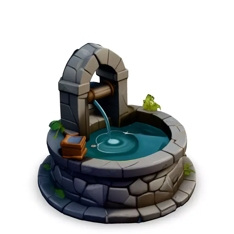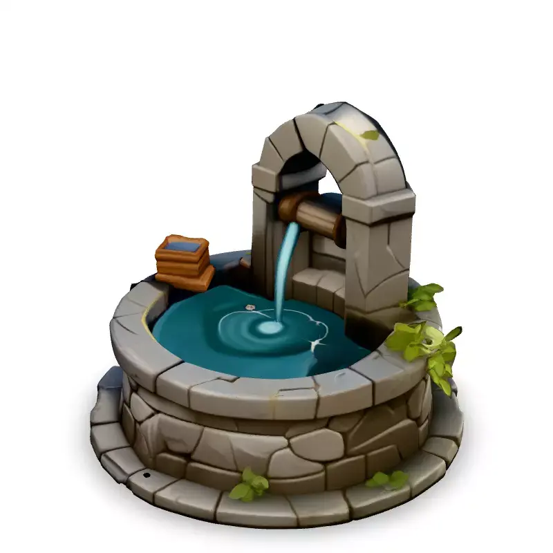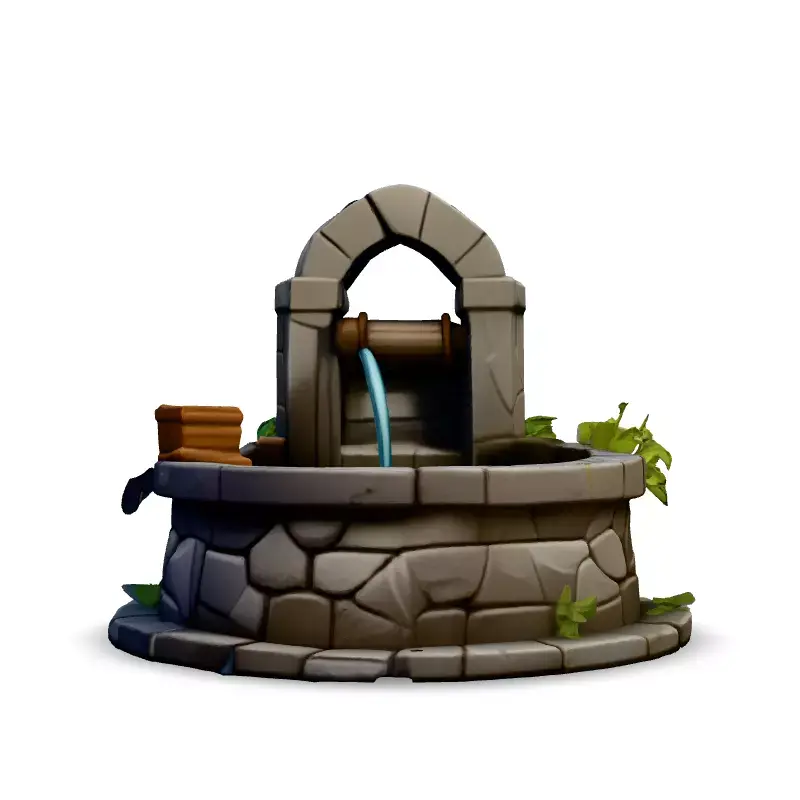 This stylized low-poly 3D model of a water well is perfect for adding a touch of rustic charm to your game environments, architectural visualizations, or AR/VR experiences. The model features a stone well with a wooden spout, a small wooden bucket, and subtle water effects, enhancing its visual appeal. Ideal for mobile games, or any project requiring optimized assets, this well seamlessly integrates into various scenes. Available in multiple formats including GLB, OBJ, FBX, and STL, it's ready for use in a variety of 3D applications. The model is optimized for real-time applications, featuring low-poly geometry and hand-painted PBR textures. Its clean topology ensures easy integration and modification. Whether you're building a medieval village, a fantasy world, or a stylized diorama, this well model provides a charming and versatile asset.