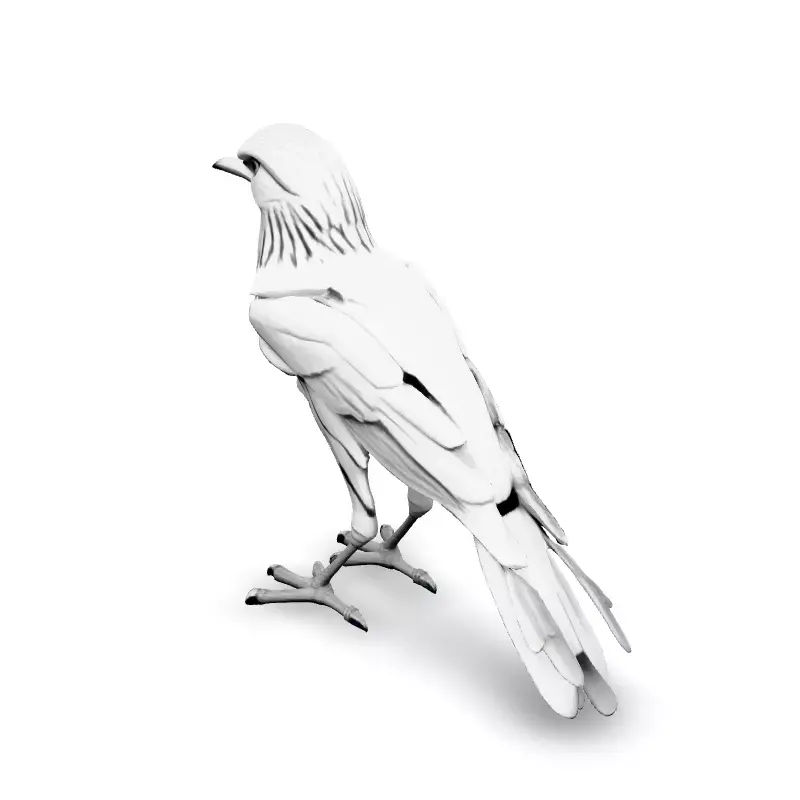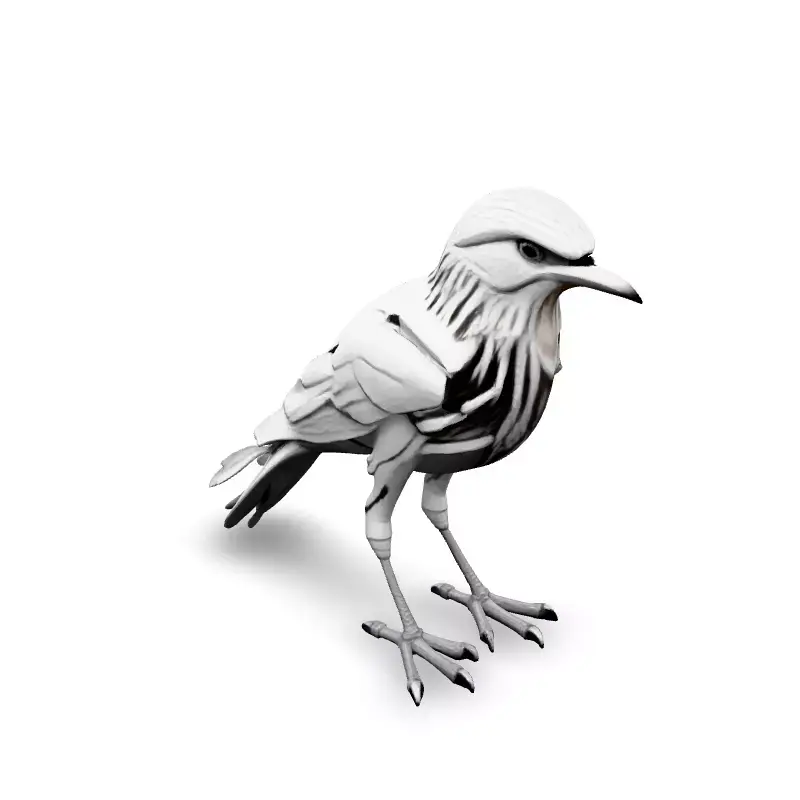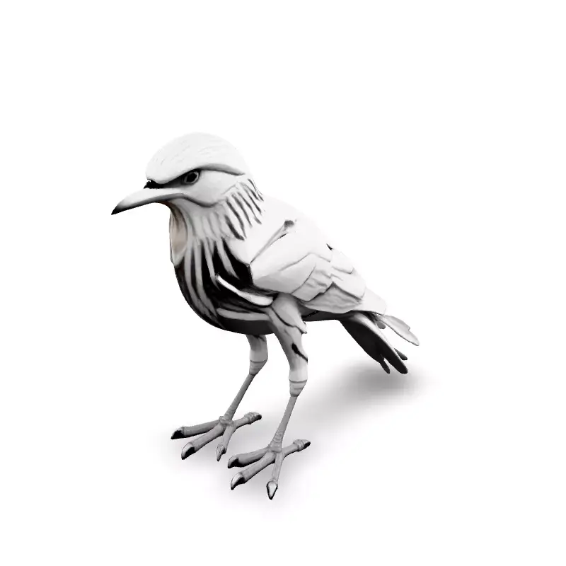 This 3D model presents a stylized, low-poly white raven, ideal for various applications such as game development, AR/VR experiences, and digital art projects. Its unique design features layered feather structures and intricate details, making it a captivating visual element. The model is available in multiple formats including GLB, OBJ, STL, FBX, and DAE, ensuring compatibility with different software. Optimized for real-time use, it maintains a low polygon count while preserving its aesthetic appeal, making it suitable for games and AR applications. It's also perfect for static renderings and close-up shots. The model is UV unwrapped and includes PBR textures, providing realistic lighting and shading. Its clean topology makes it easy to modify and animate, while its low-poly nature ensures smooth performance. This raven model is a versatile asset ready to enhance your projects with its striking design and optimized performance.