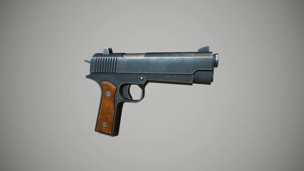 Low-poly model of the Stylized M1911 Colt doesn't contain any n gons and has optimal topology. The archive includes such 2K textures: base color map, metalness map, normal map (OpenGL), and roughness map. Images and video were rendered in Marmoset.