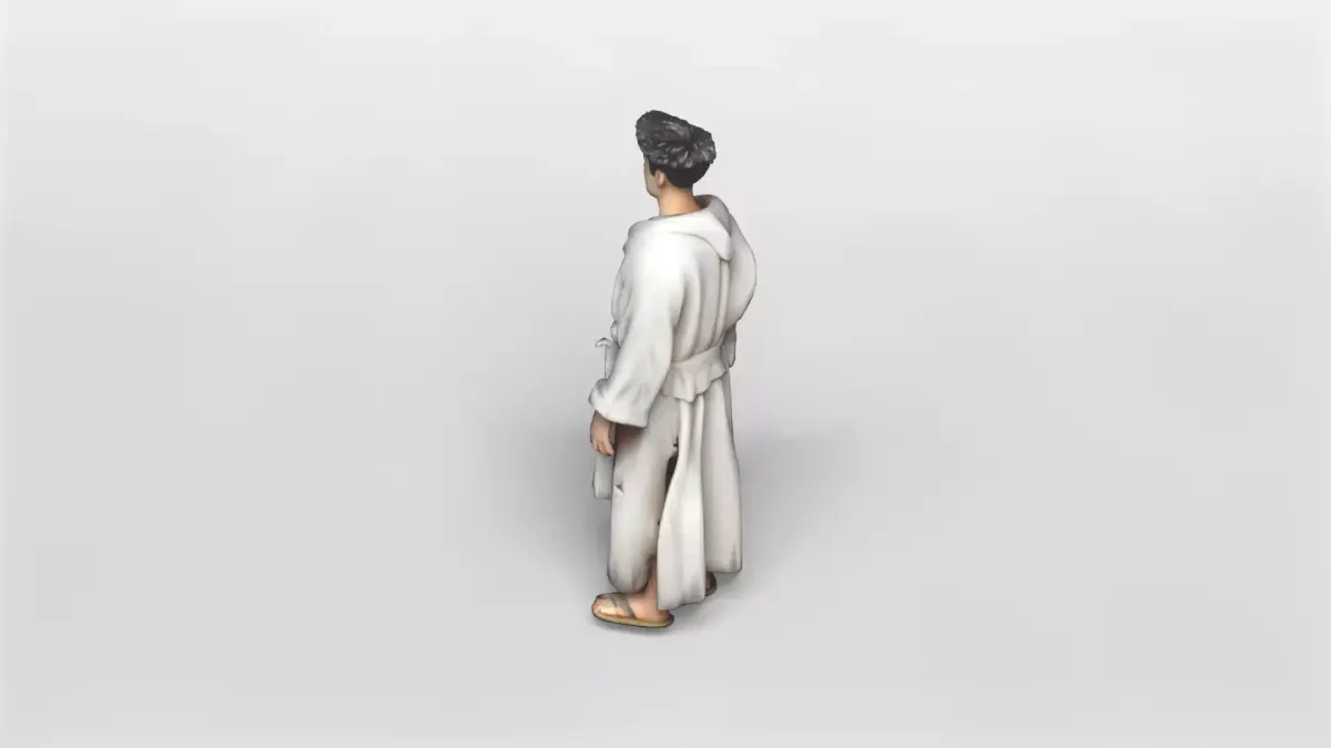 This highly detailed 3D model features a stylized male character dressed in a cozy, light-colored bathrobe, paired with simple sandals. The character's relaxed pose and casual attire make it perfect for use in scenes depicting home life, relaxation, or spa environments. The model showcases clean geometry and smooth textures, emphasizing a modern and approachable design aesthetic.The bathrobe is modeled with realistic folds and a tied belt, adding to the authenticity and visual appeal of the character. The sandals are designed with attention to detail, complementing the overall casual look. The character's hair is stylized with a slightly tousled appearance, enhancing the natural and laid-back vibe.This model is available for download in gmb format, with the texture included to ensure seamless integration into your projects. Additionally, it is offered in fbx format, providing compatibility with a wide range of 3D software and game engines. Both formats maintain the high-quality detail and texture fidelity, making it easy to customize or animate as needed.Ideal for use in animation, game development, or virtual reality applications, this model offers versatility and ease of use. Whether you need a character for a relaxing home scene or a casual social environment, this stylized male character in a bathrobe is a valuable asset for your 3D content library.