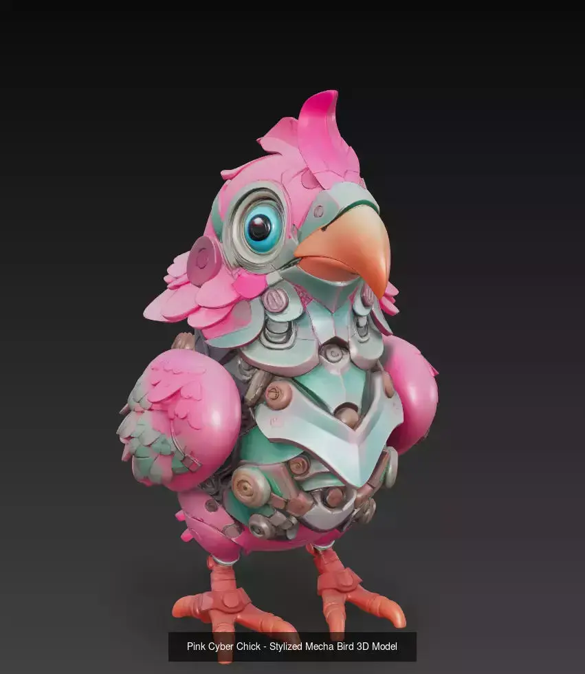Bring color, charm, and futuristic style to your projects with this 4-model Stylized Mecha Bird Collection, featuring a unique set of cyber-avian creatures — each crafted with high detail, expressive shapes, and polished mechanical design.