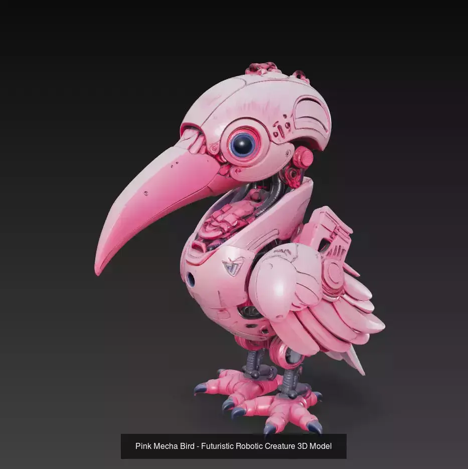 Pink Mecha Bird – sleek futuristic robotic bird with polished details