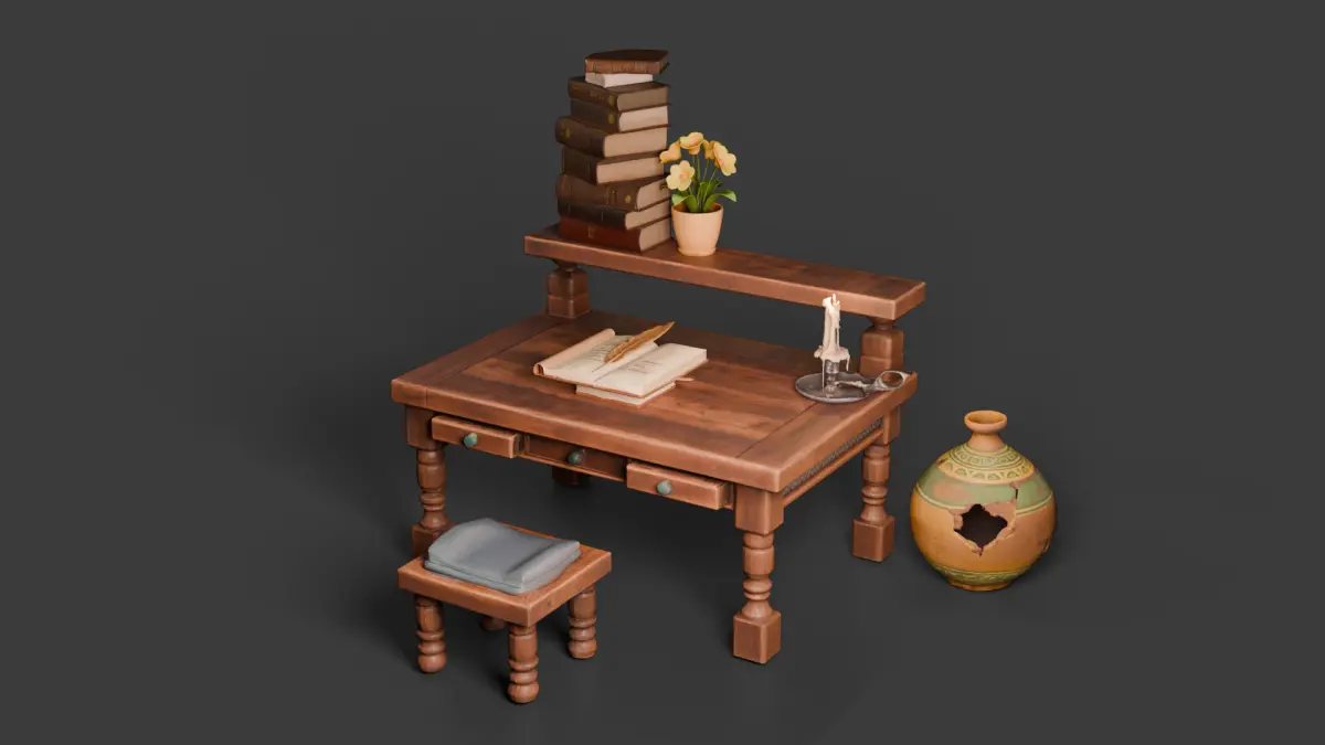 Stylized Desk-Set, Antique Office, Game Ready
