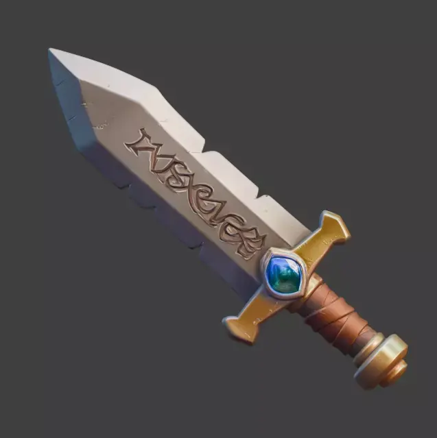 The stylized medieval broadsword is a charming 3D asset featuring chunky, exaggerated proportions, perfect for casual RPGs, fantasy games, and stylized adventures.